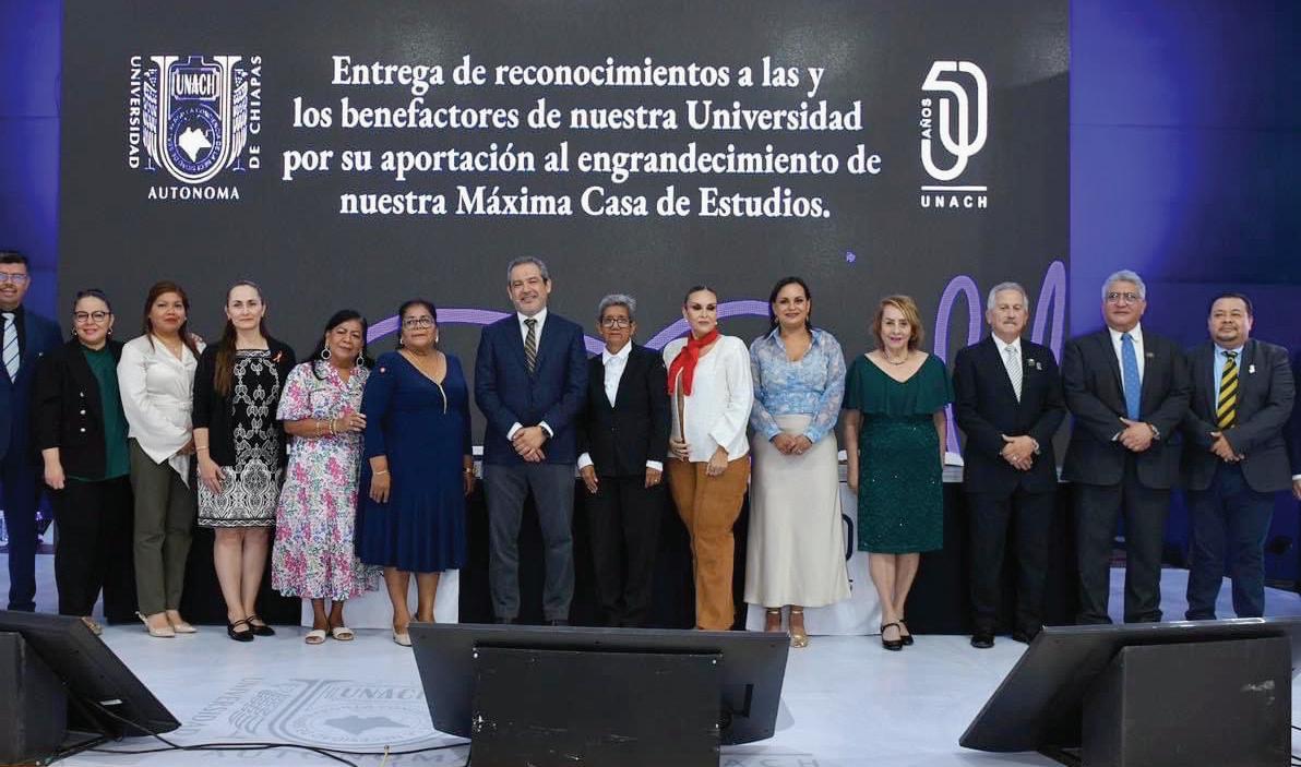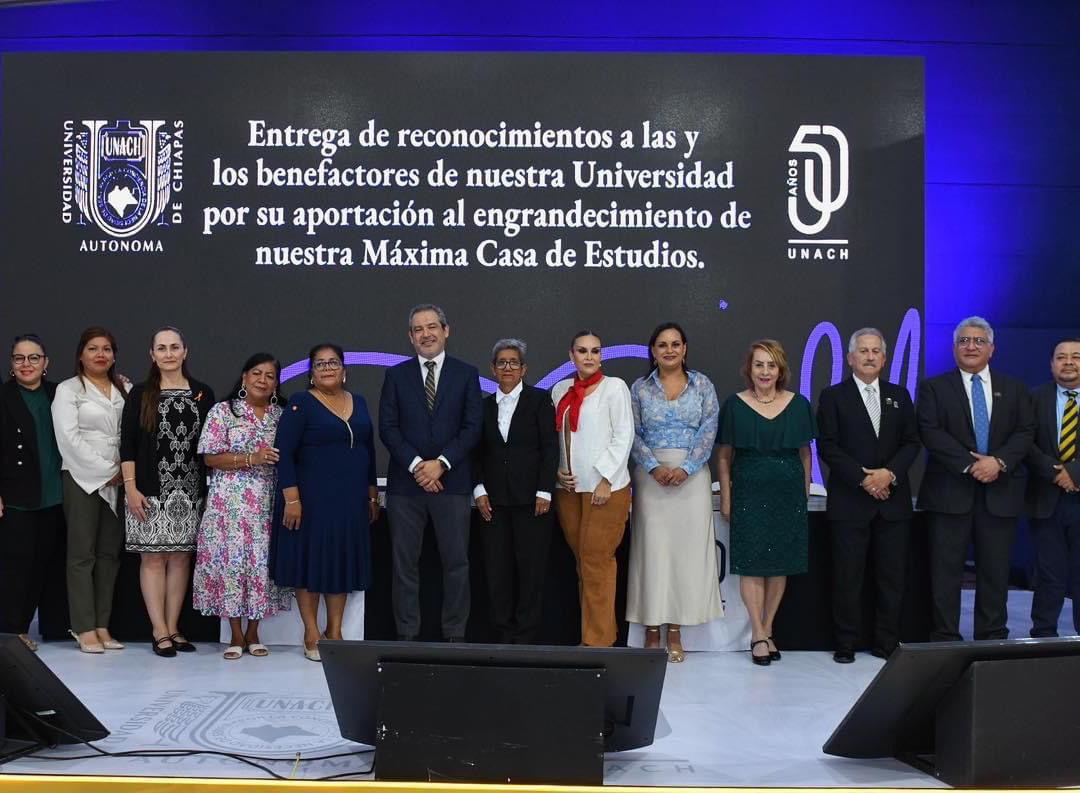 Finalmente, con la presencia de familiares y amigos de los homenajeados, se realizó la entrega de reconocimientos a las egresadas y egresados de la Primera Generación de las Unidades Académicas que dieron origen a esta casa de estudios de los chiapanecos, como son las Licenciaturas en Contaduría, Administración, Ingeniería, Derecho y Médico Cirujano. Al respecto, el rector Carlos Faustino Natarén Nandayapa expresó que este tipo de reconocimientos, realizados en el marco de la celebración por los 50 años