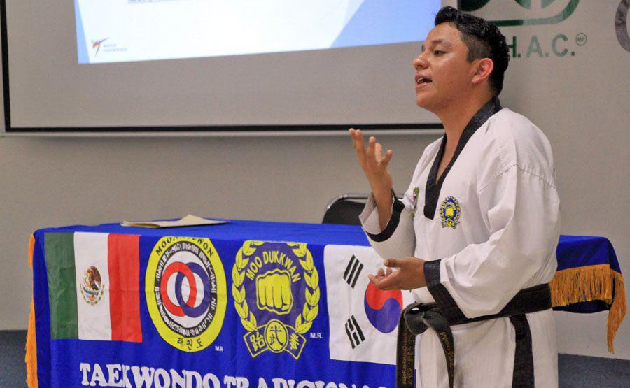 Certamen que se desarrolló en las instalaciones del Colegio de Arquitectos de esta ciudad capital, teniendo la presencia del Profr. Priciliano González Rojas, Arbitro Internacional y Nacional de la FMTKD y miembro activo de MoonMooWon Moo Duk Kwan, quien por espacio de más de ocho horas vertió sus conocimientos ante las interrogantes de los ahí presentes.