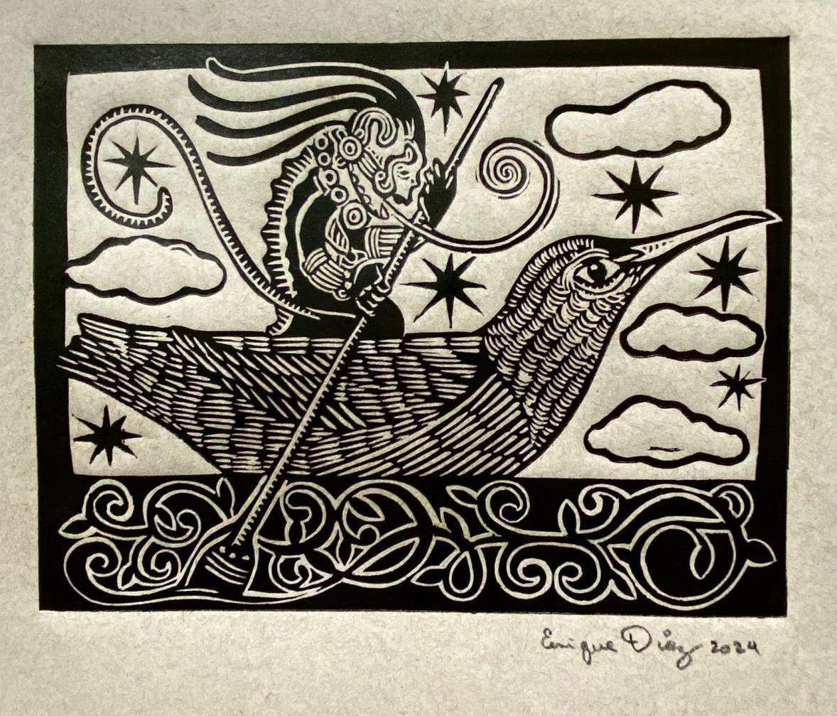 La máscara del dios Hun Ahau cubre el rostro del que gobierna el remo