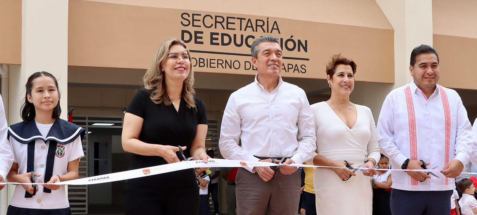 Al encabezar la inauguración del edificio administrativo de la Secretaría de Educación y el banderazo de salida de equipamiento y mobiliario para escuelas de nivel básico, el gobernador Rutilio Escandón Cadenas destacó que en seis años se logró hacer justicia a las trabajadoras y los trabajadores del sector educativo y mejorar integralmente la infraestructura de los centros escolares a través de la construcción de espacios seguros, dignos y de calidad.
