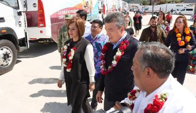 Al destacar que también se favorece a la población de esta región con ayudas técnicas, como sillas de ruedas, bastones y andaderas, el mandatario destacó la entrega de 10 ambulancias de traslado para
