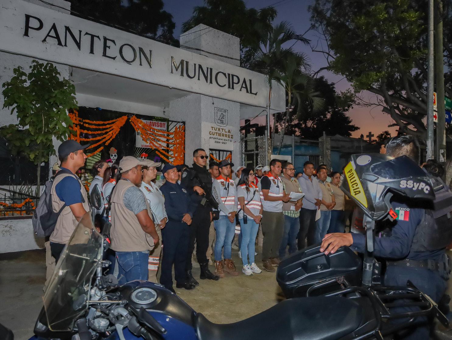 El Operativo Especial de Día de Muertos 2024 se realizó del 31 de octubre al 3 de noviembre en el Panteón Municipal, Jardín San Marcos, Terán, El Jobo, Copoya, Plan de Ayala; y en el de Emiliano Zapata, donde participaron Protección Civil, Salud Municipal, Servicios Municipales, Seguridad Públi-