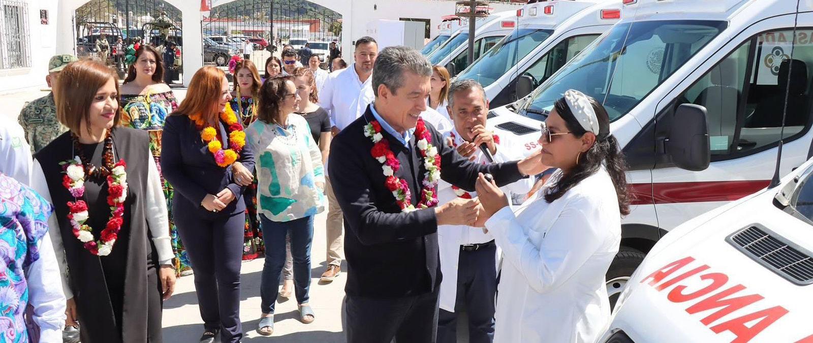 * El gobernador también entregó 10 ambulancias de traslado para centros de salud y hospitales de la región Altos, y los municipios de Frontera Hidalgo y Venustiano Carranza