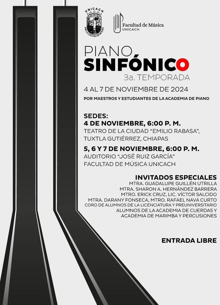El 15 de noviembre en Tapachula en la Universidad Politécnica. El miércoles 20 en Tuxtla Gutiérrez, en el auditorio de la UNICACH. El viernes 22 en Palenque, en el parque de la feria de “Los Ganaderos”.