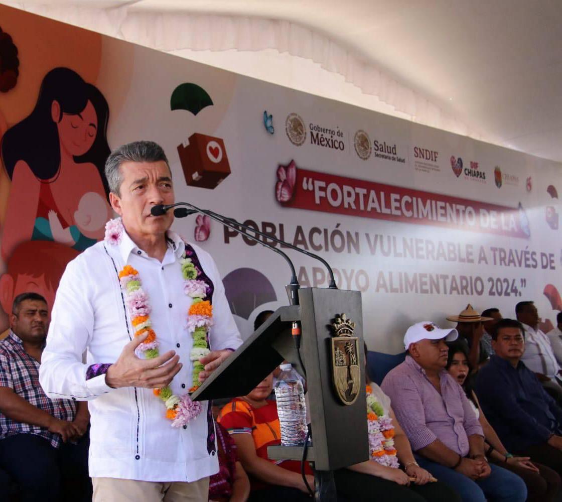 El mandatario mencionó que se realizó una inversión superior a los 85 millones de pesos en estos paquetes alimentarios, que están integrados por alimentos de la canasta básica, nutritivos y que pueden adaptarse al tipo de alimentación de la población de Chiapas, para que se consuman con gusto.