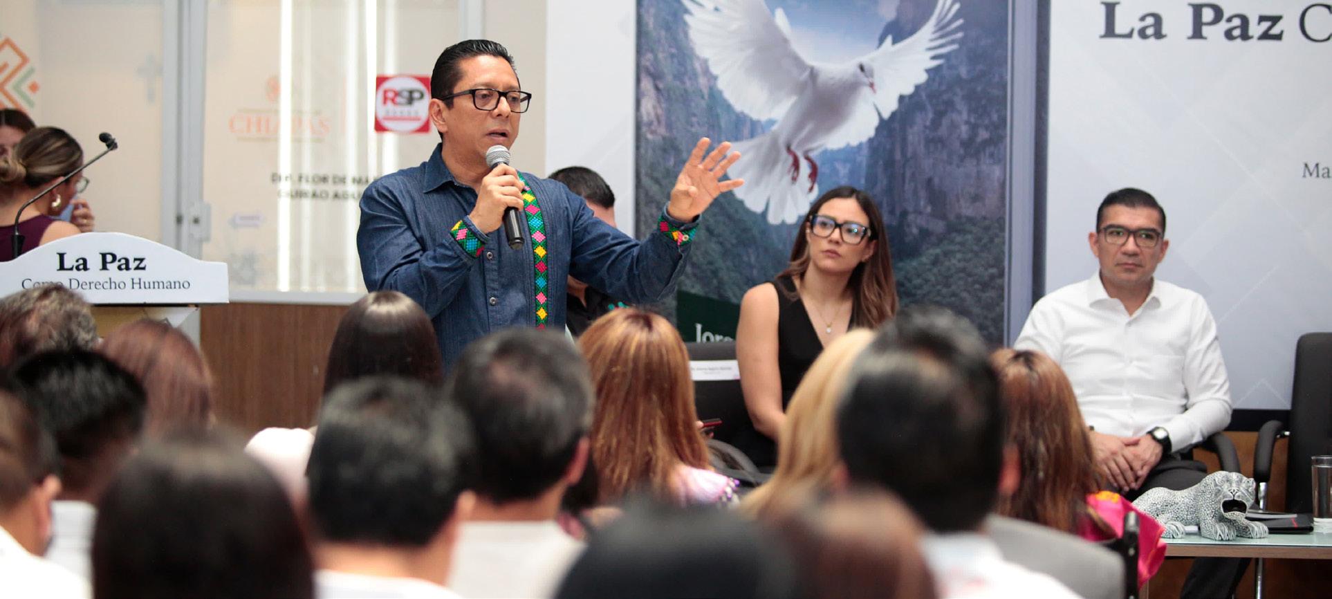 “El derecho humano a la paz es una prioridad en la nueva ERA de Chiapas; por ello se propone establecer políticas públicas para poder alcanzar el segundo piso de la Cuarta Transformación. Entre todos, estamos trabajando en la mesa de construcción de la paz. Corresponde a nuestro gobernador dejar el legado de paz positiva a través del programa de alfabetización, construyendo más y mejores vías de comunicación; invirtiendo al desarrollo en diferentes partes del estado y dotando de apoyos y servicios básicos a todas las comunidades. La prioridad de la Nueva Era es lograr la paz positiva”.