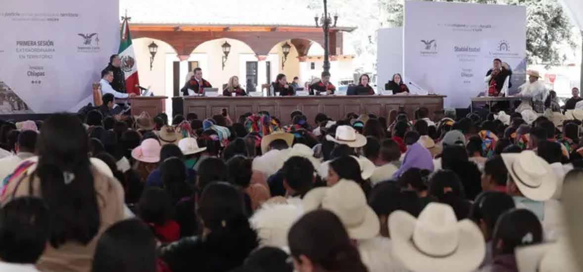 La Suprema Corte de Justicia de la Nación SCJN en un hecho histórico el 26 de febrero del 2026 en territorio Chiapaneco, celebró su primera “Sesión extraordinaria en Territorio” como ejercicio inédito de acercamiento de la impartición de justicia a los pueblos y comunidades indígenas; expresándose en el discurso que este acto marca el nuevo rostro de la justicia en México. Es un acto donde se discutió proyecto hoy sentencia que contiene razonamiento integral fundado y motivado sobre los alcances de los derechos indígenas de última generación como la autonomía, autogobierno, libre determinación; ejercicio de recursos públicos como sujetos de derecho colectivo.