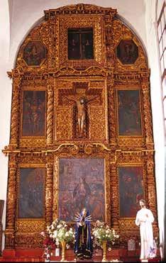 un estilo barroco, a juzgar del siglo XVIII. Al parecer el retablo Mayor de la iglesia también pereció en un incendio, lo que es verdaderamente lamentable porque si el de la capilla es sumamente bello, el del Retablo Mayor debió haber sido majestuoso.