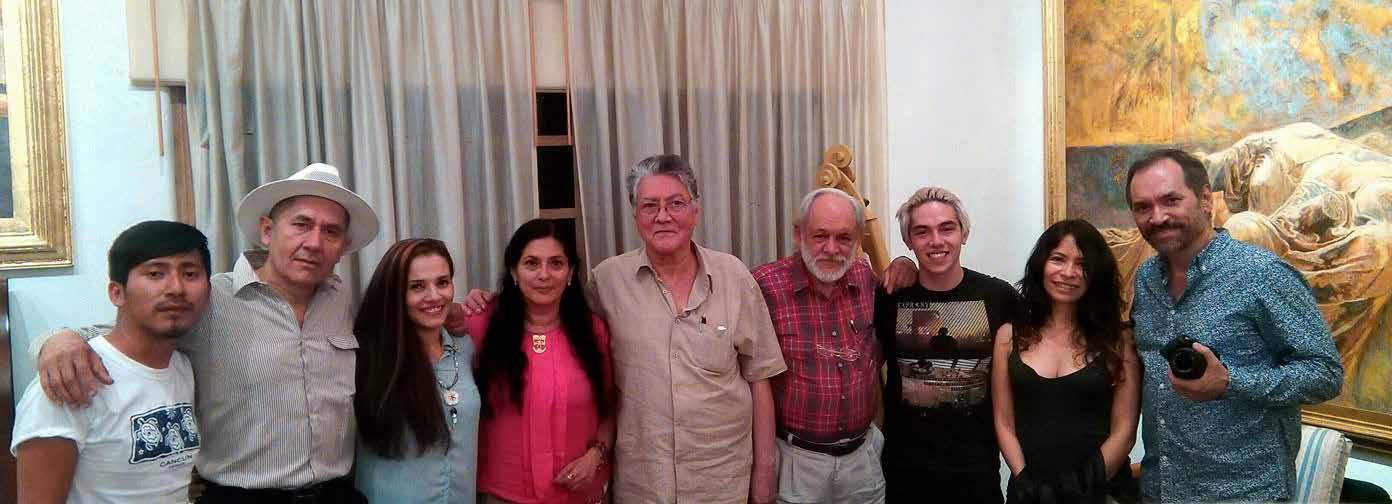 En casa del artista Enrique Estrada, con un grupo de artistas plásticos y el poeta Ricardo Cuéllar