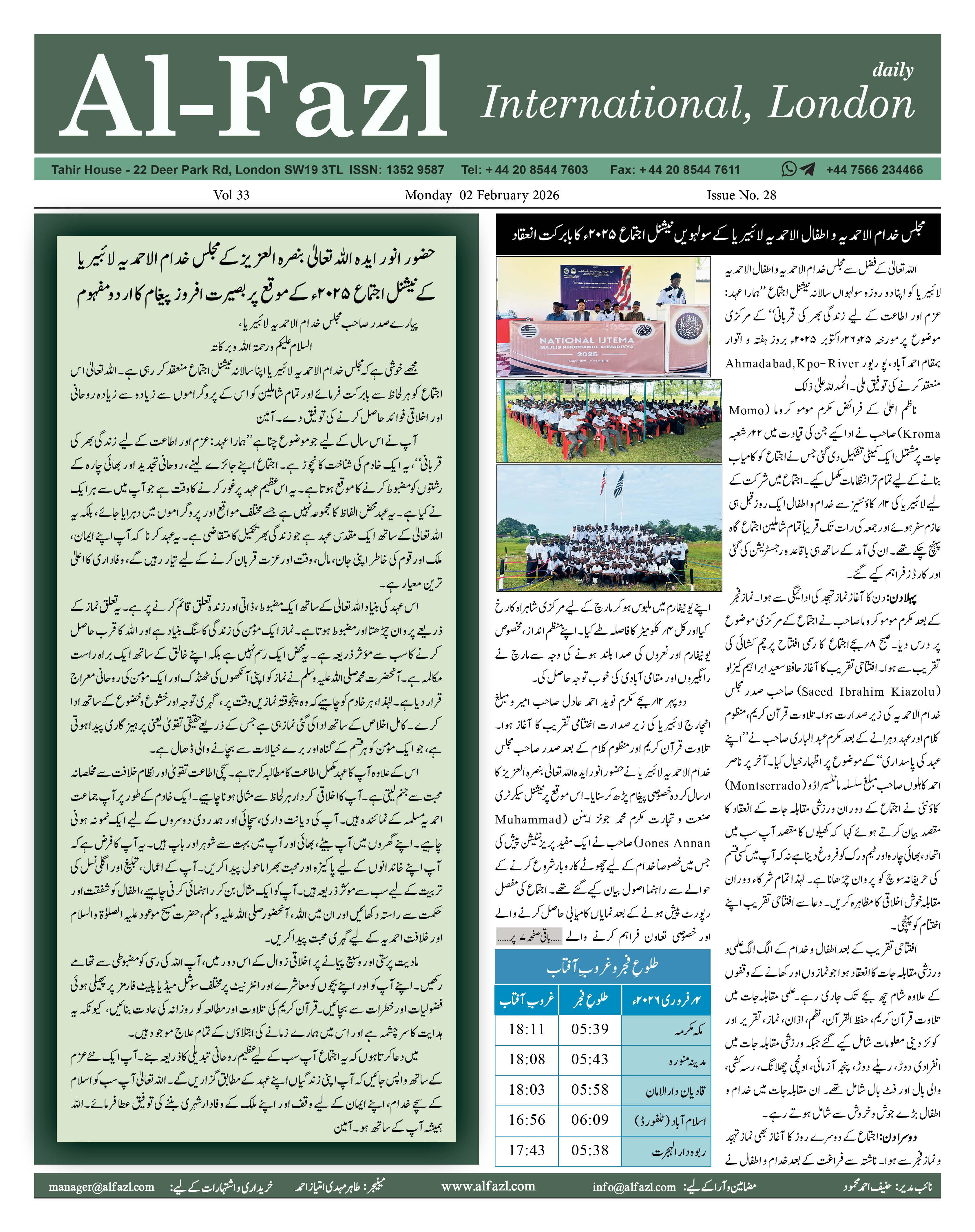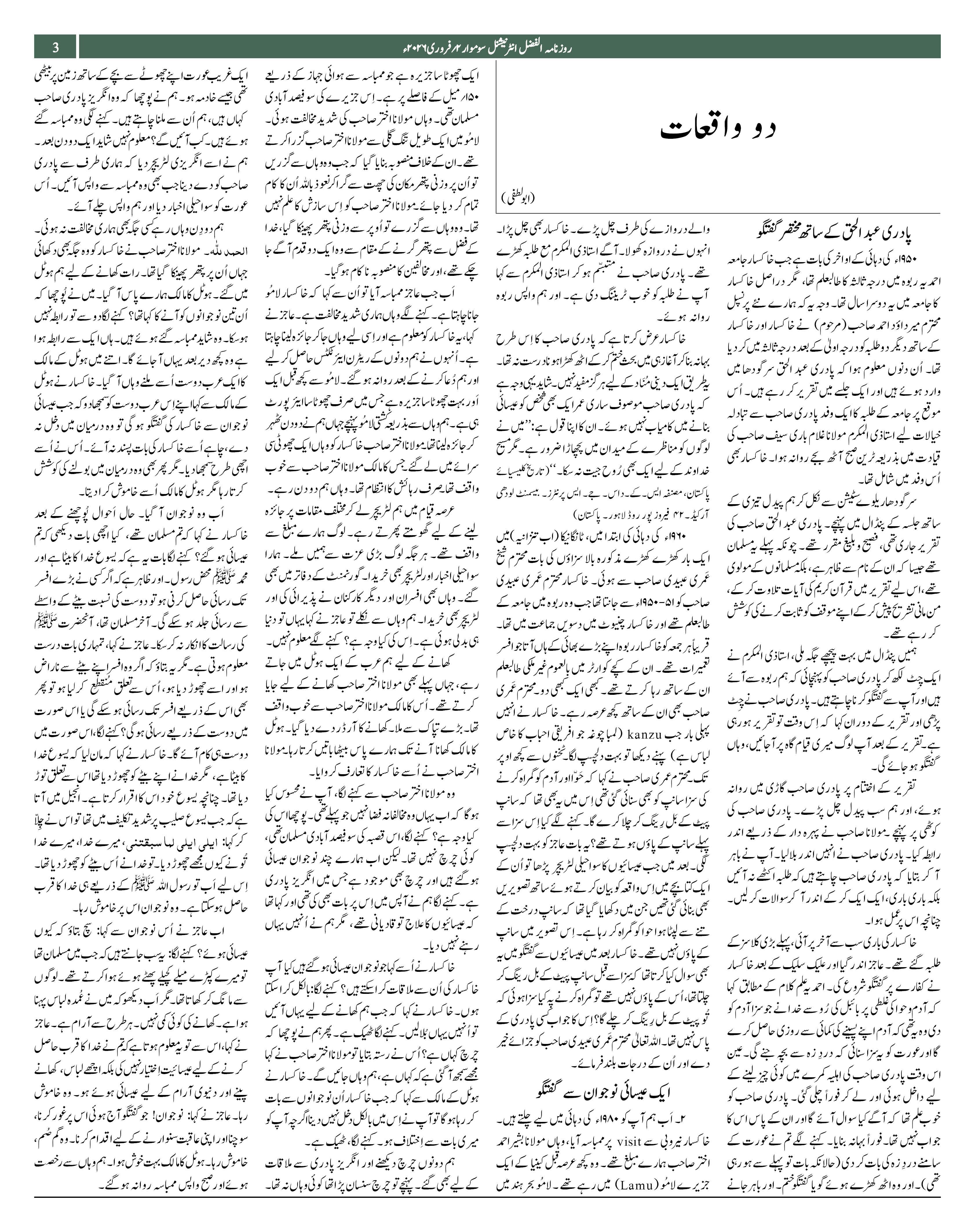 Alfazl International 02 February 2026