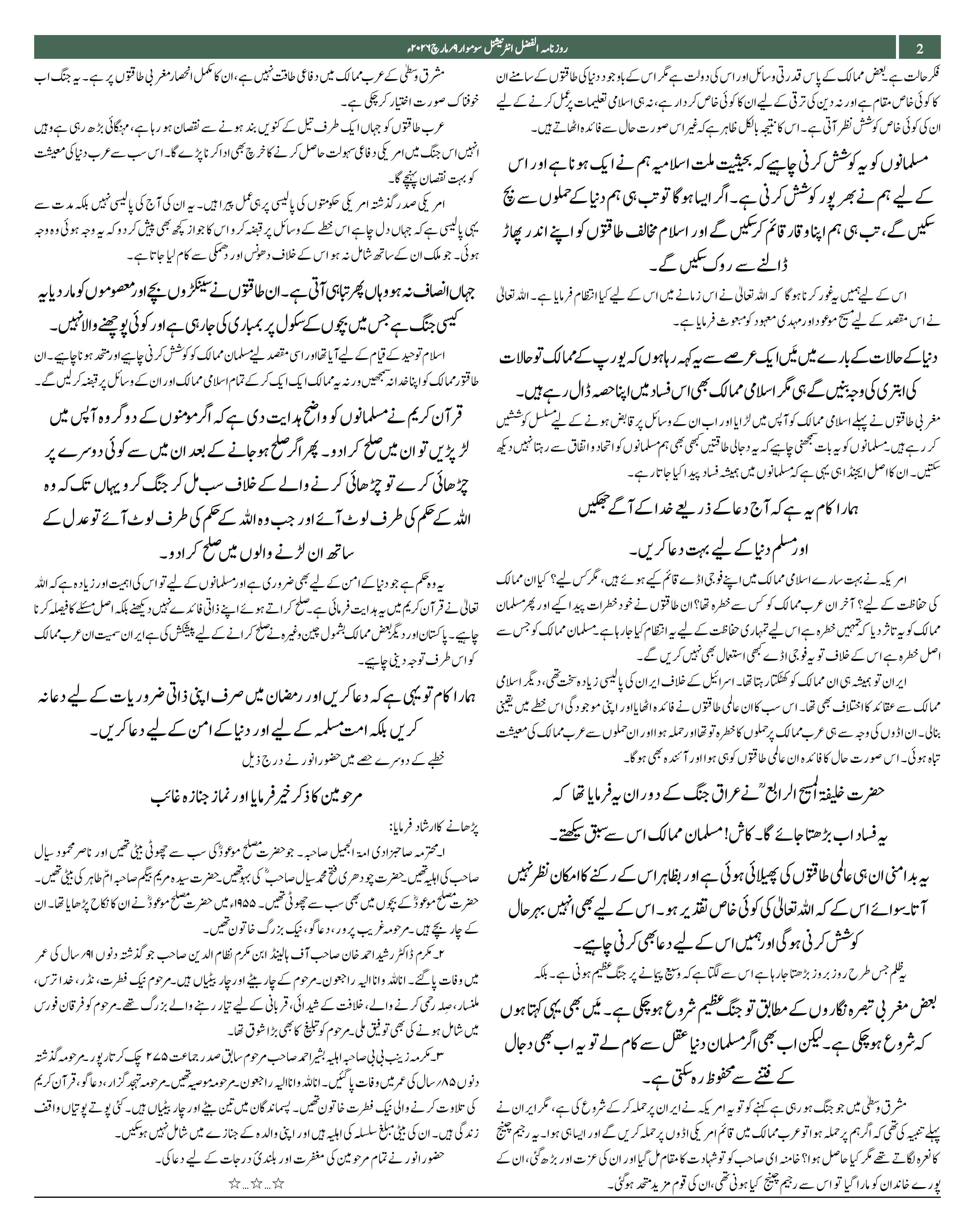 Alfazl International 09 March 2026