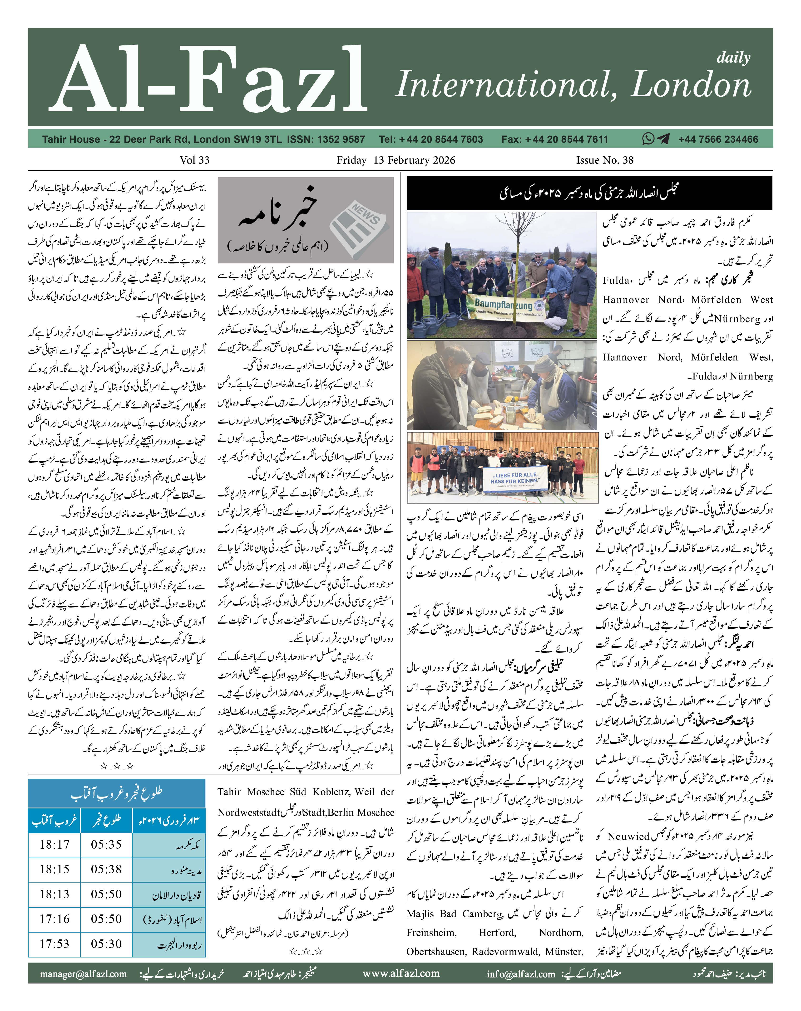Alfazl International 13 February 2026