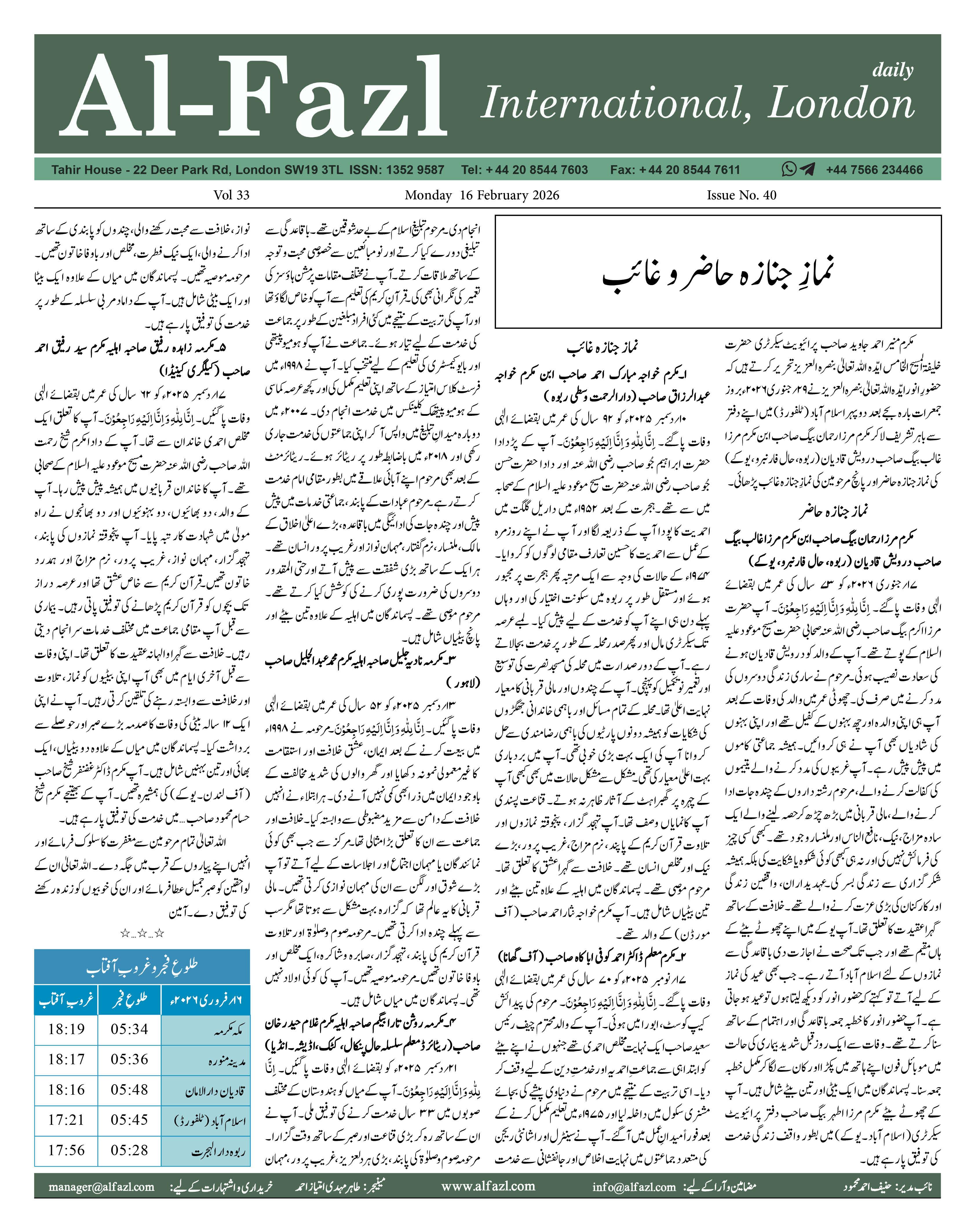 Alfazl International 16 February 2026