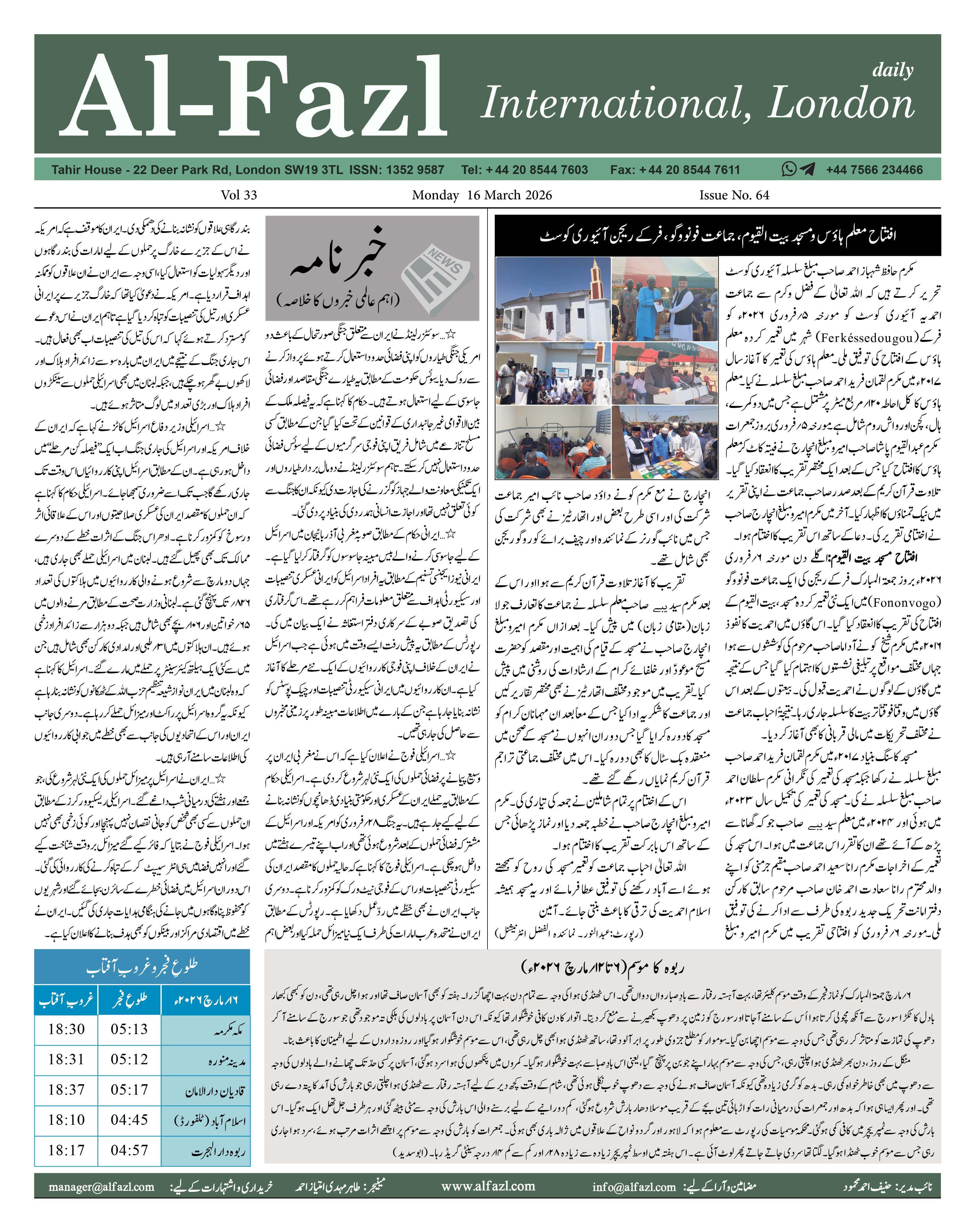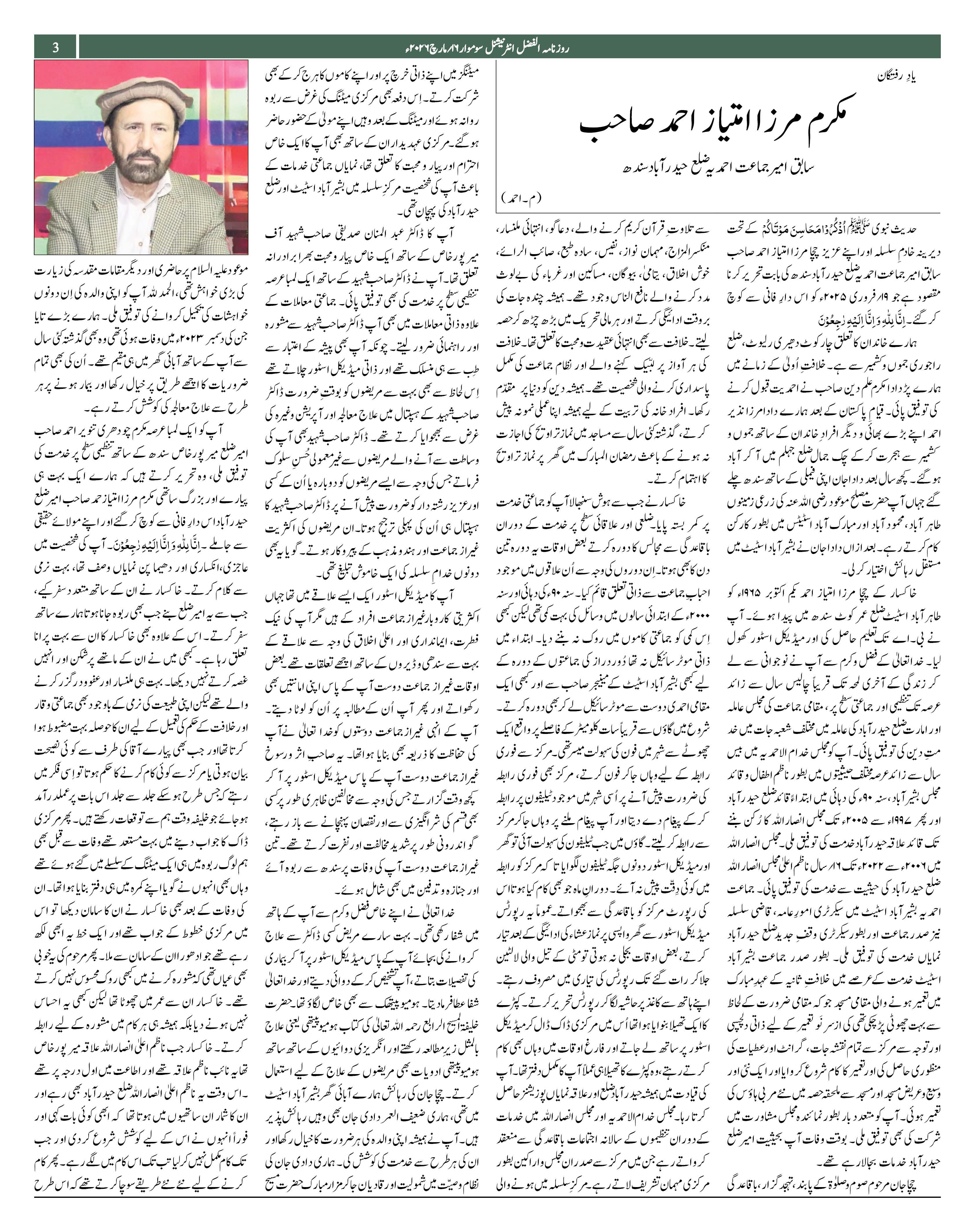 Alfazl International 16 March 2026