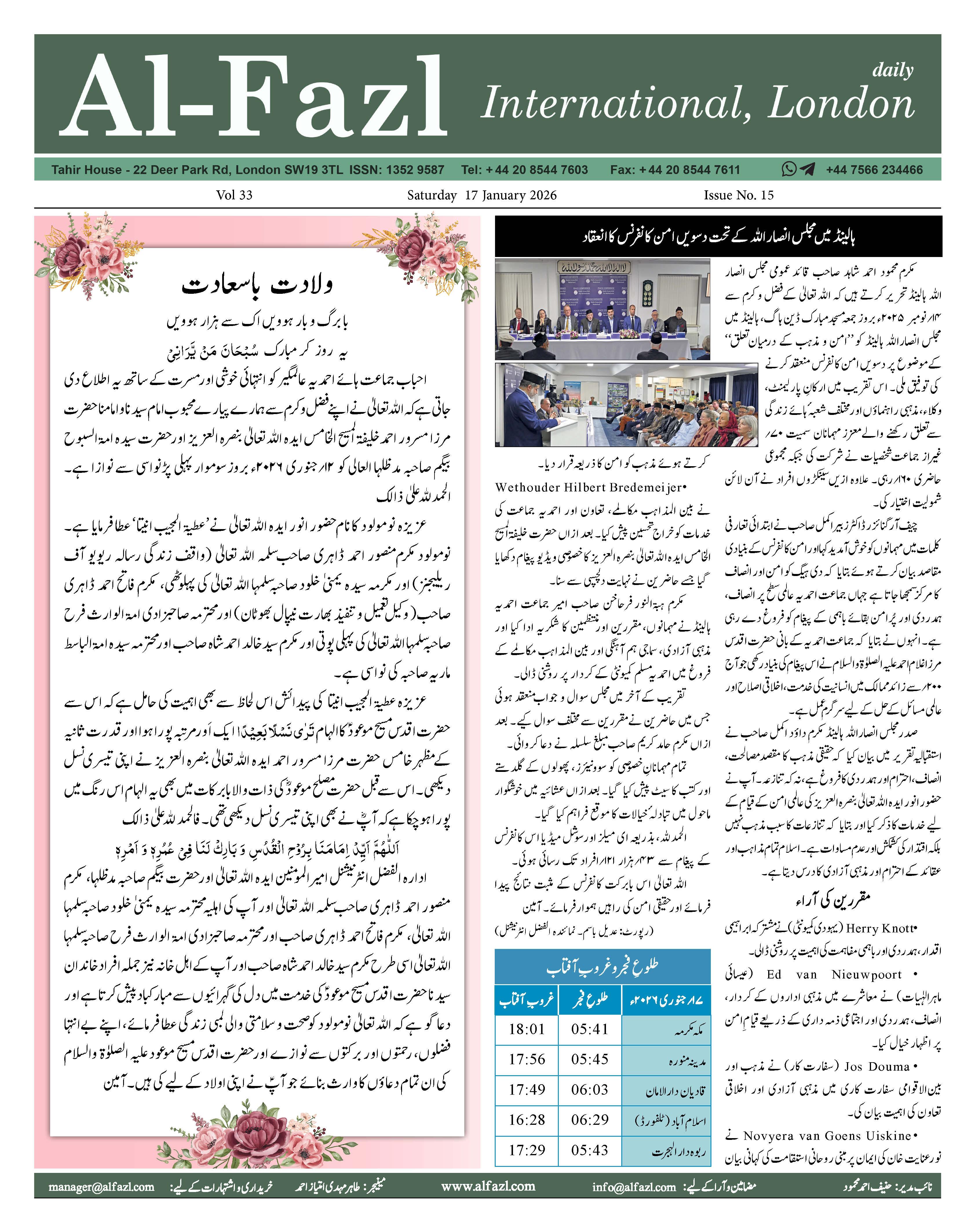 Alfazl International 17 January 2026
