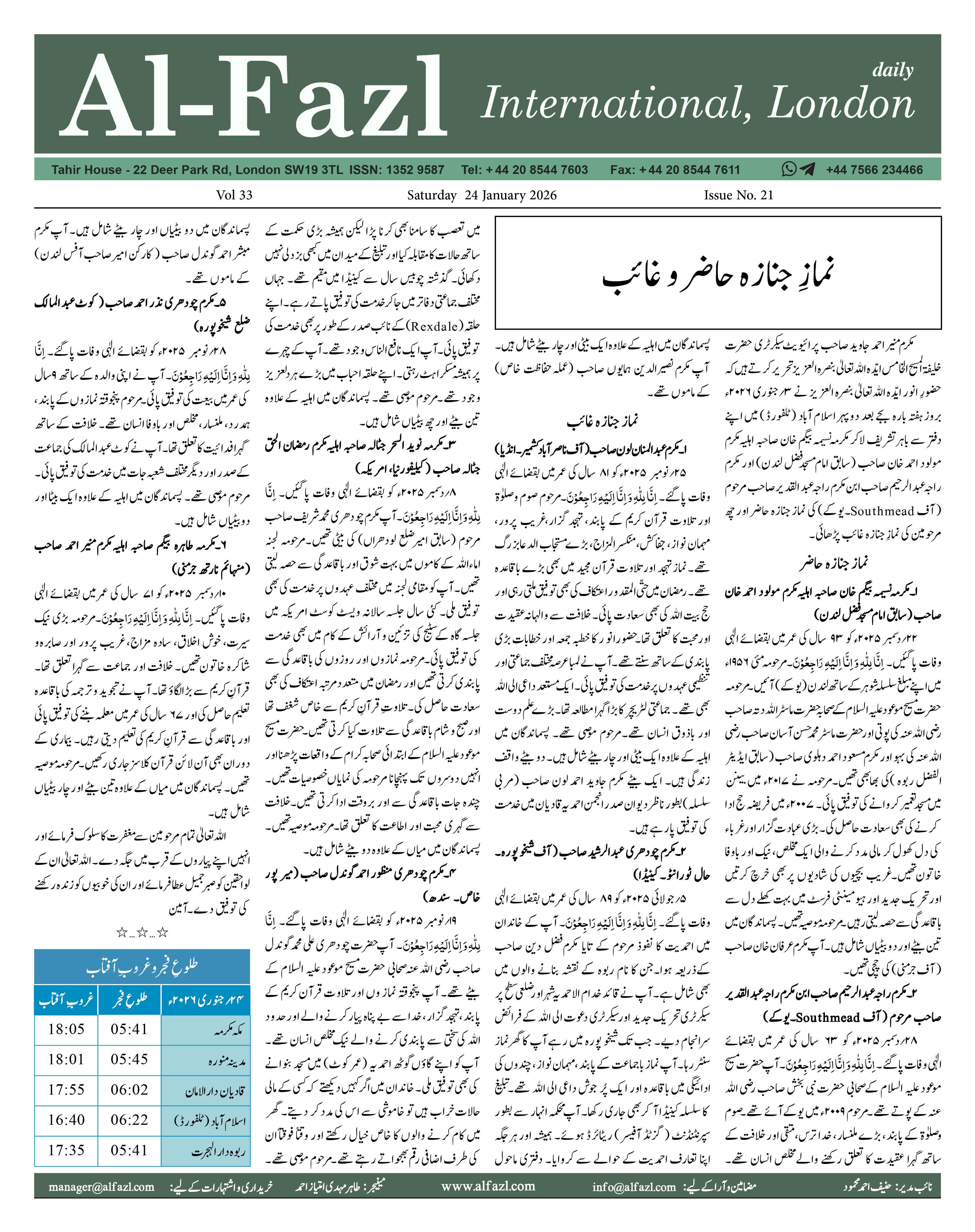 Alfazl International 24 January 2026