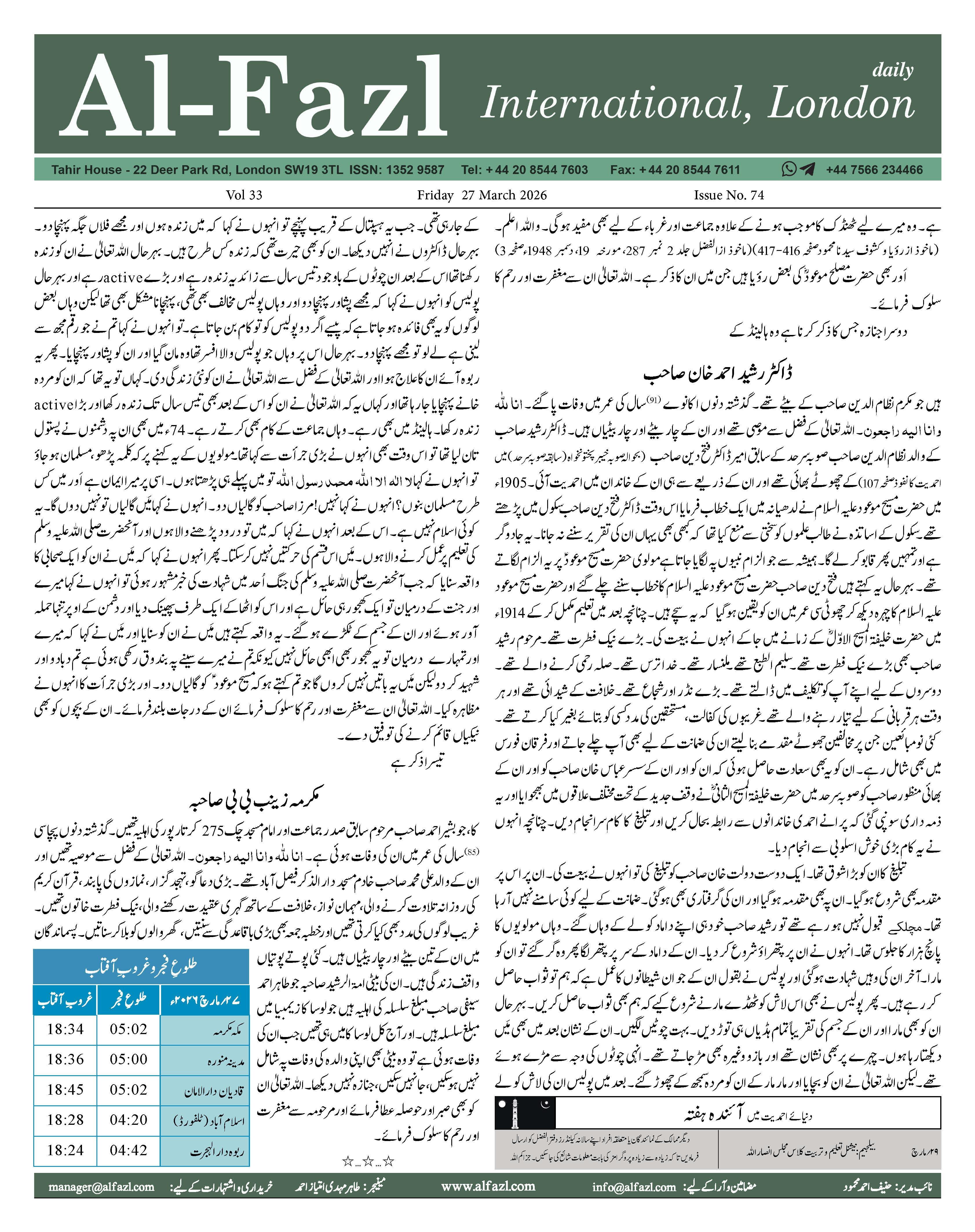 Alfazl International 27 March 2026