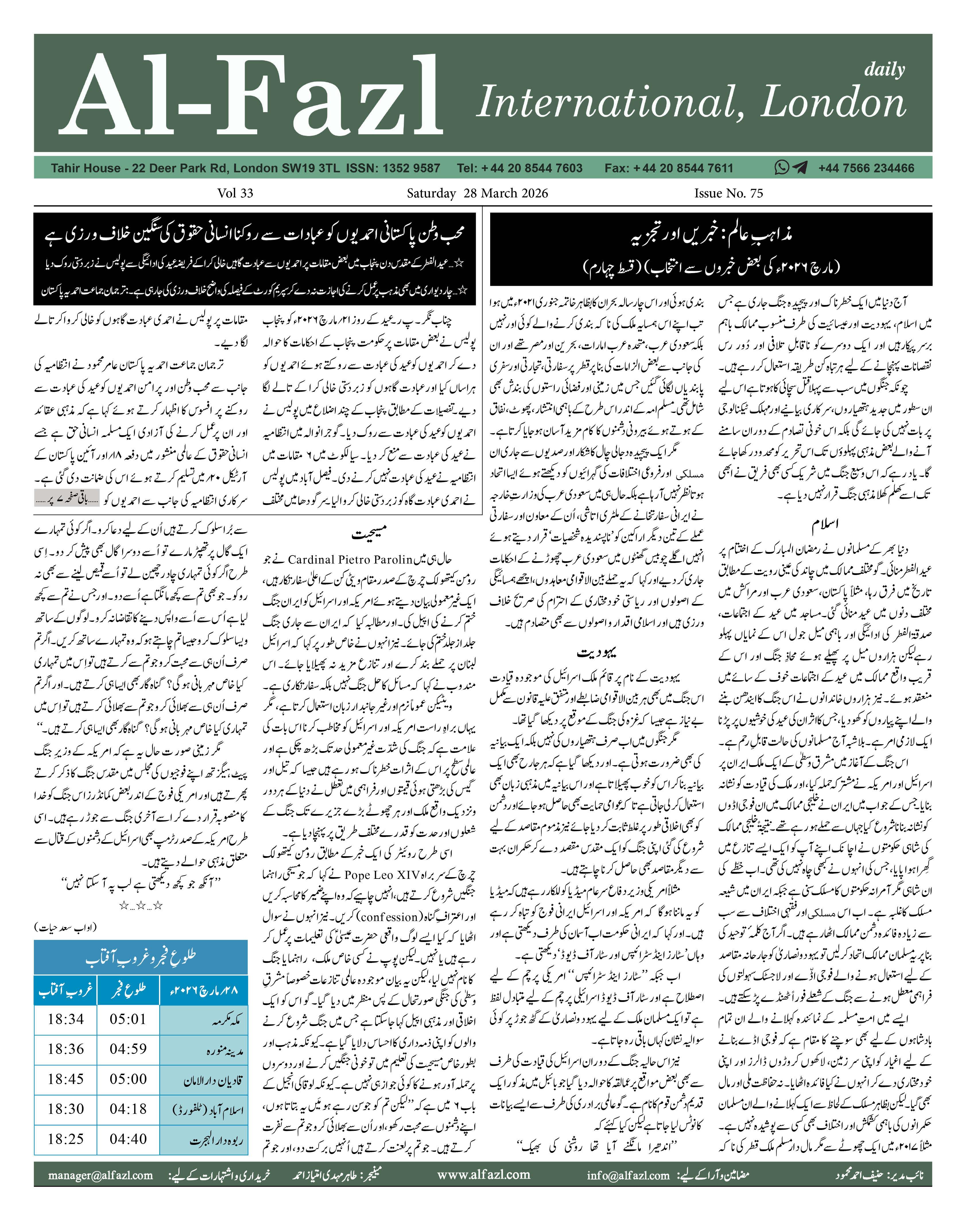 Alfazl International 28 March 2026 by Alfazl International - Issuu