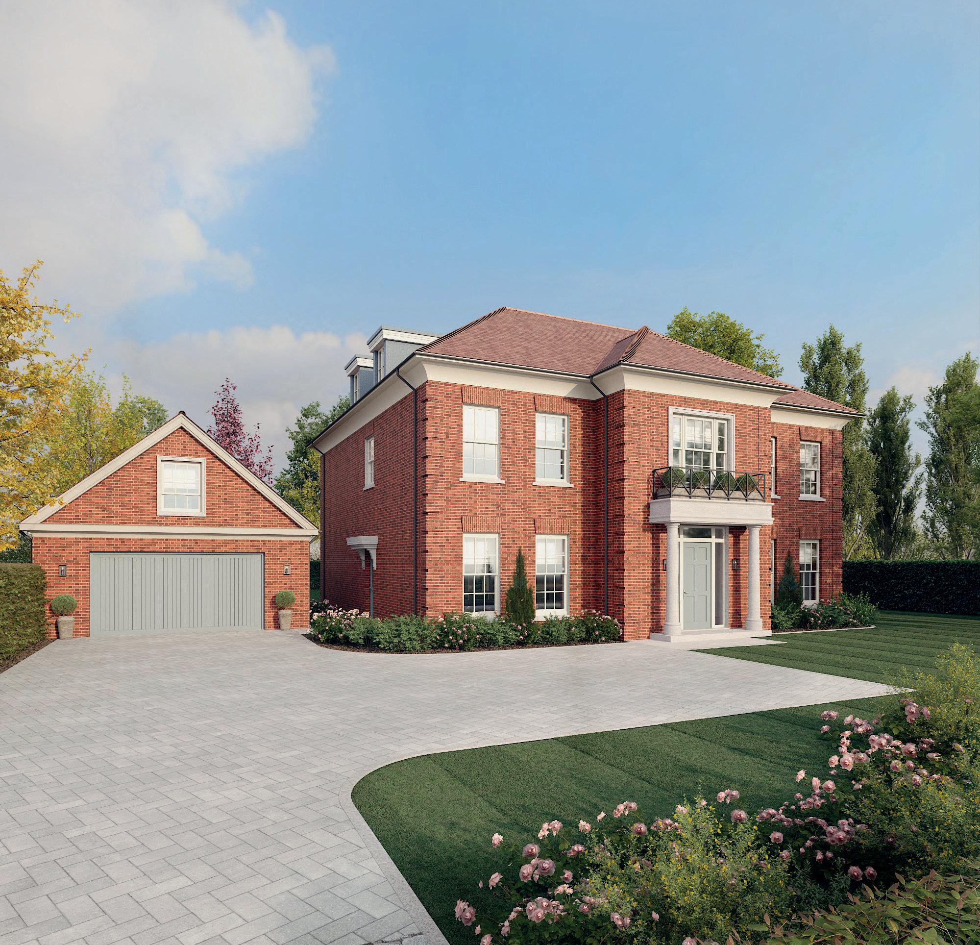 Doors & Windows: wet cast Portland stone door heads, window cills, principal opening window surrounds and portico or canopy. Front entrance door colour matched to garage doors.