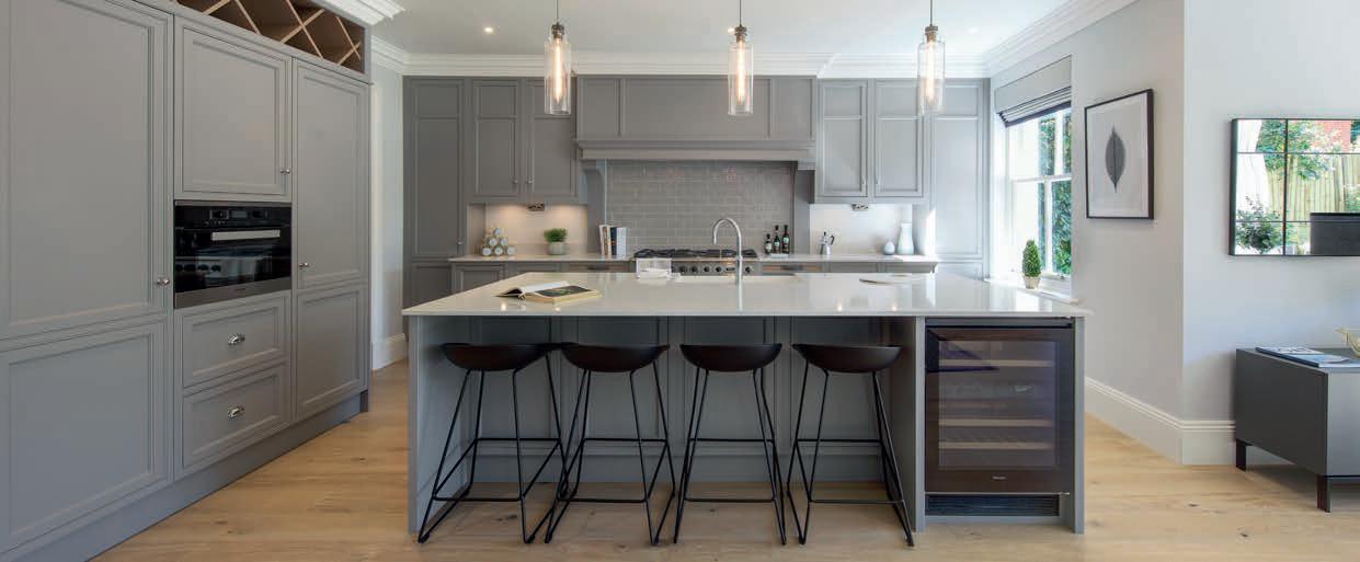 A single built-in oven, a combination microwave oven, an induction hob (800cm), plus an integrated fridge, freezer and dishwasher. Built-in wine cooler with dual temperature zones. Quooker tap provided in a gunmetal finish. Pre-wire provided for waste disposal.