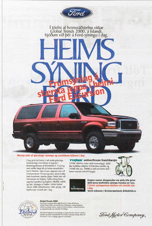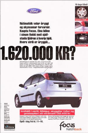 Campaña realizada en diversos medios de Dinamarca. Entre abril y octubre Ford Europa promociona al reciente lanzado Focus y a la Escape y Excursion americanas.