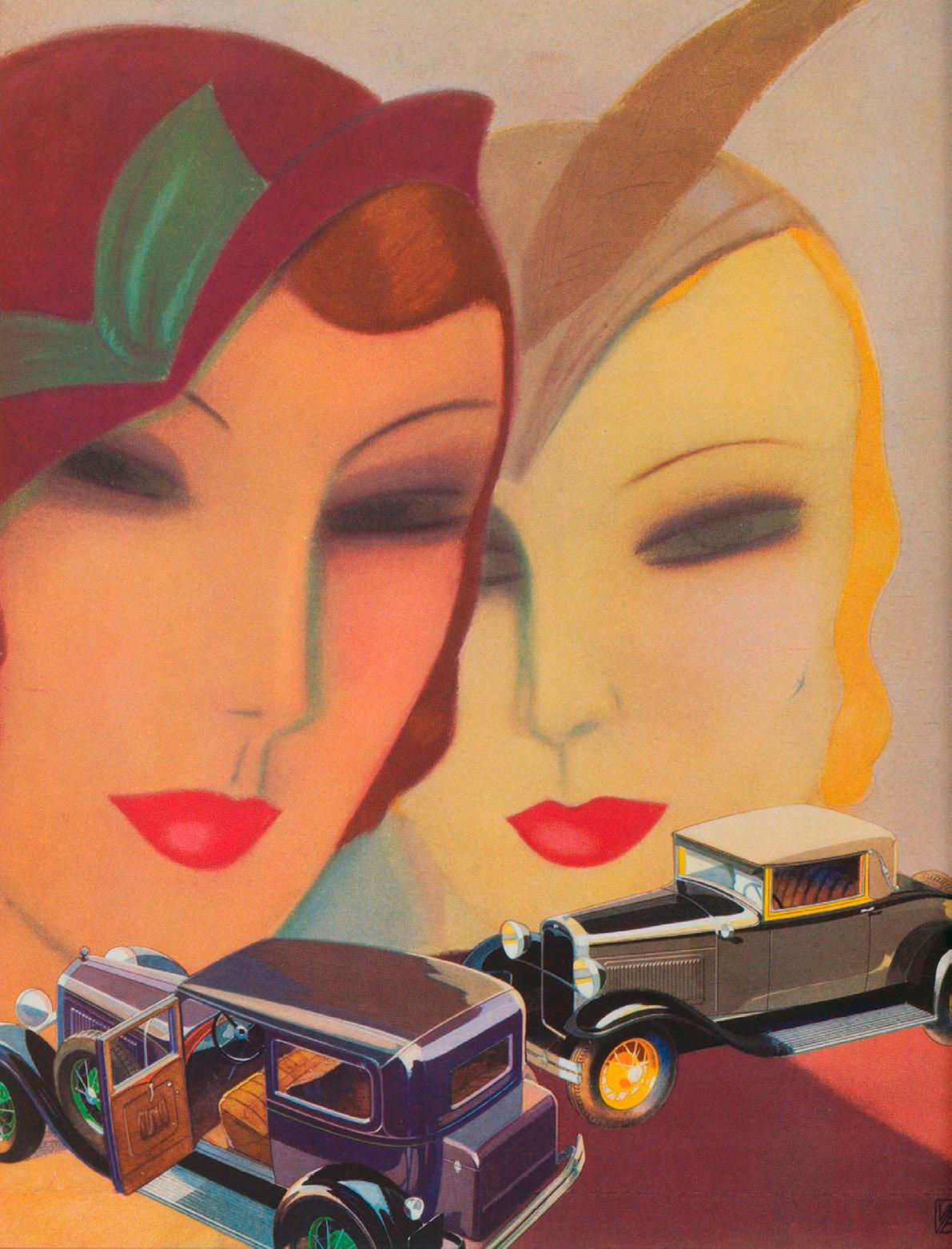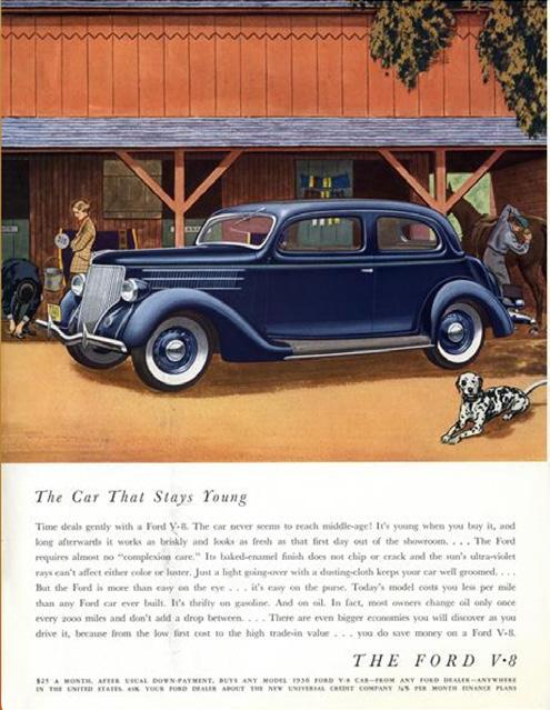 Campaña realizada en Vogue, revista estadounidense de moda que se fundó en 1892. Fue la primera publicación americana que logró conquistar Europa. En Gran Bretaña comenzó a publicarse en 1916 y en Francia en 1920. Hoy está considerada la revista de moda más influyente a nivel mundial y se edita en más de veinte países. Entre marzo y agosto se publicaron estas hermosas piezas que muestra al Ford V-8 en ambientes muy coloridos, luciendo sus diferentes versiones de carrocería.