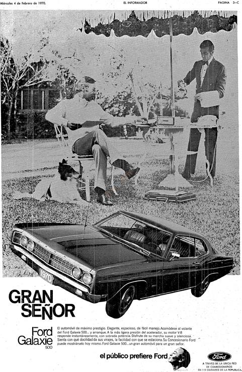Campaña realizada en El Informador, diario mexicano independiente con sede en la ciudad de Guadalajara, Jalisco, fundado en 1917. Entre febrero y abril la Ford de México promociona sus modelos fabricados en los Estados Unidos, Galaxie, Mustang, Falcon y una rural que los aztecas llamaron Guayín.