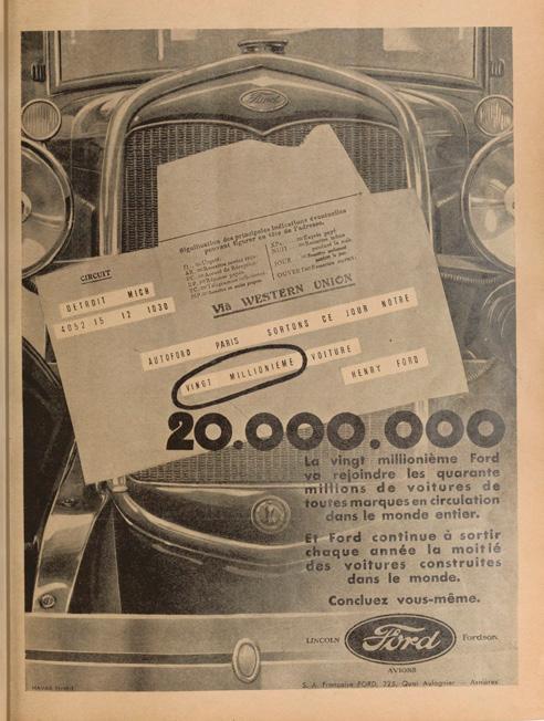 Campaña realizada en Omnia, revista práctica sobre automovilismo publicada en Francia. Entre abril y agosto la filial francesa de Ford, con destacada creatividad y diseño gráfico promociona al Modelo A, lanzado en 1928. En una de estas publicidades se informa que Ford ha producido su unidad 20 millones, cifra no alcanzada por ninguna otra marca hasta ese momento.
