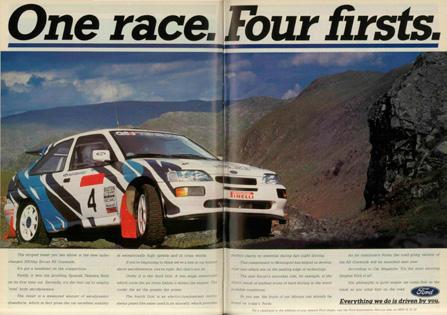 rante 1991 la Ford inglesa promociona al exitoso Sierra ganador en Turismo, al Escort de Rally, al Escort RS2000, al hermoso Escort Cabriolet y al Scorpio con motor Cosworth, ganador en Fórmula Uno.