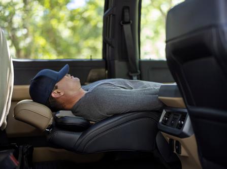 • Asientos Max Recline que se plie gan casi horizontalmente y levantan la parte inferior del asiento para obtener una superficie casi plana para maximi zar la comodidad durante el tiempo de inactividad.