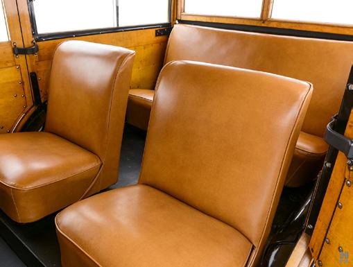 El interior presenta tapicería marrón de época, mientras que las alfombrillas de goma y los paneles de las puertas de madera revelan el propósito utilitario del automóvil. Los asientos están en excelen tes condiciones gracias al uso del vinilo adecuado y resistente, y el tablero de ace ro del color de la carrocería cuenta con instrumentos originales en buenas con diciones estéticas. Con espacio para hasta siete pasajeros, este Ford es un gran clási co para disfrutar en familia y con amigos.