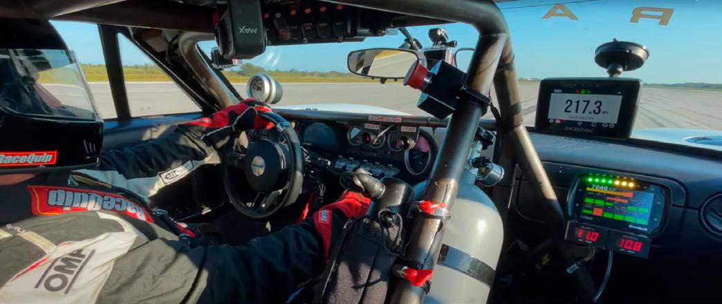 Y esa habilidad de ser conducido en calle puede ser vista en el video. Bohmer conduce sin mucho drama hasta llegar a la velocidad máxima, siendo lo más dramático las vibraciones del auto al llegar al fin de la pista. Lo más impresionante es ver que el Ford GT de 2,700 hp está equipado una caja manual de seis velocidades.