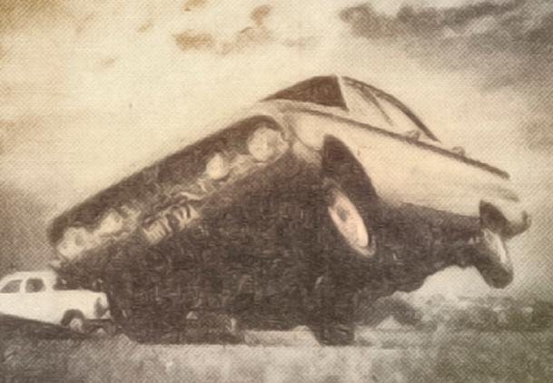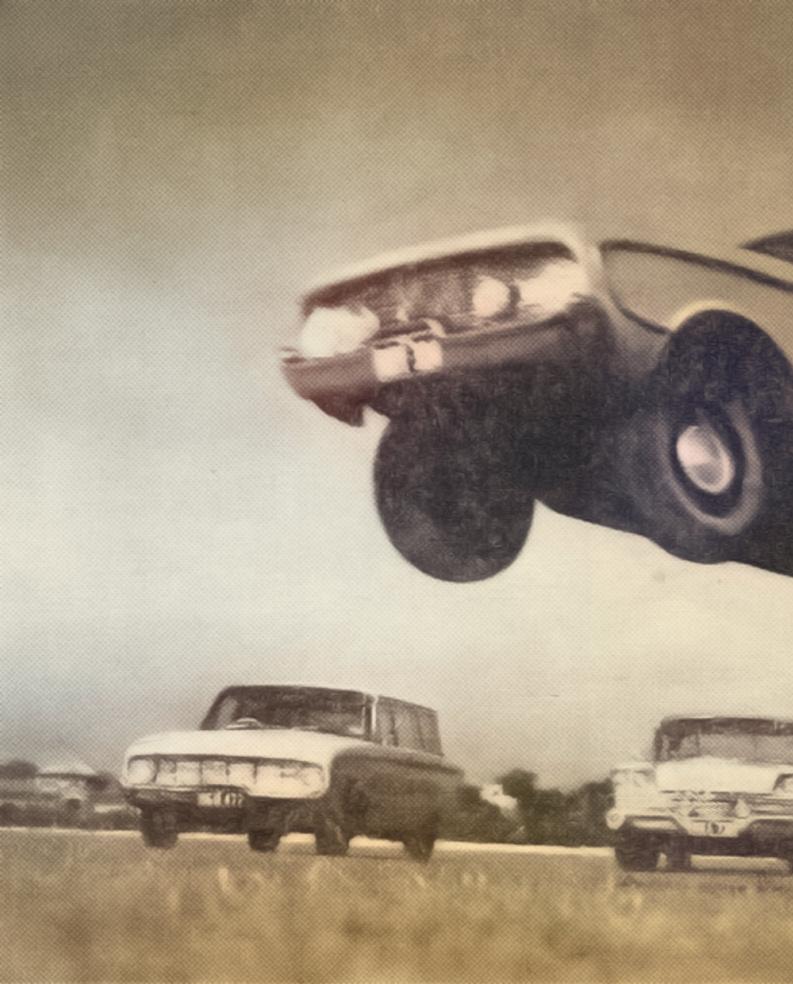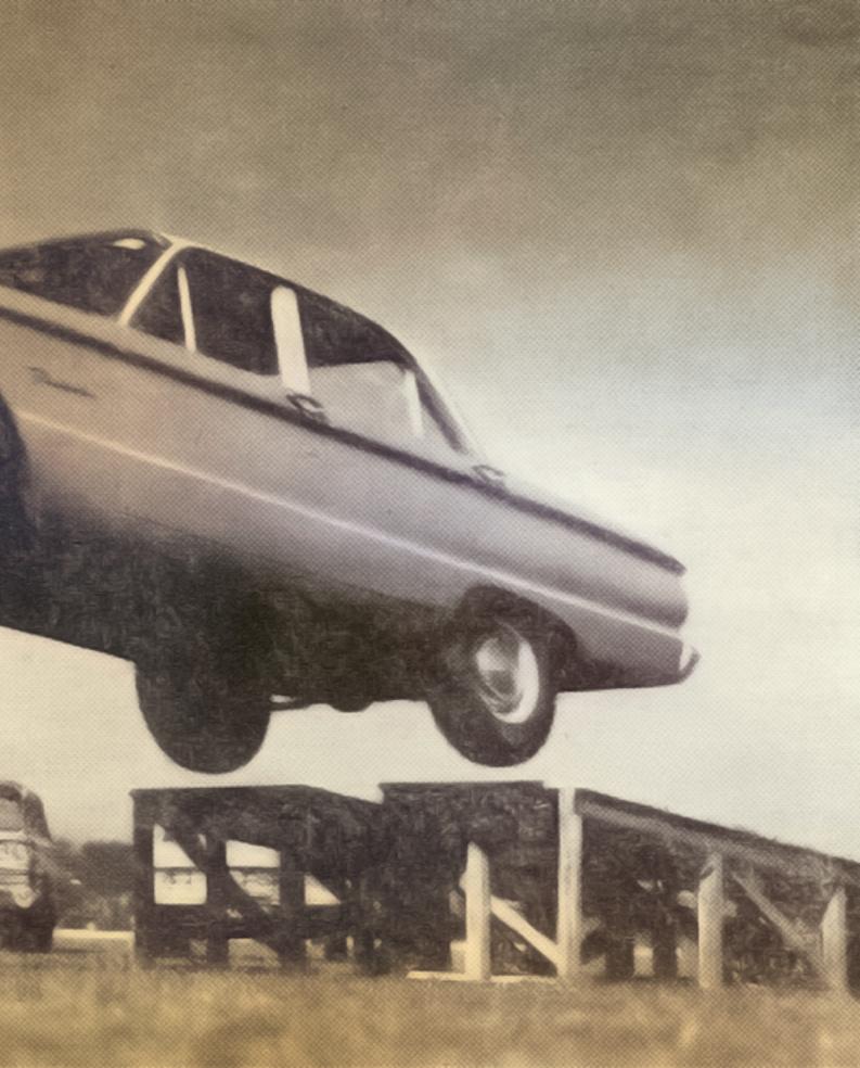 El golpeteo que recibe un coche con este tipo de tratamiento es fantástico. (No puedes imaginar lo que es golpear el suelo a 60 mph desde una altura de 8 pies). Sin embargo, según "Crash" y los ingenieros que inspeccionaron el Falcon después, la carrocería estaba firme y tensa, la suspensión y la dirección eran