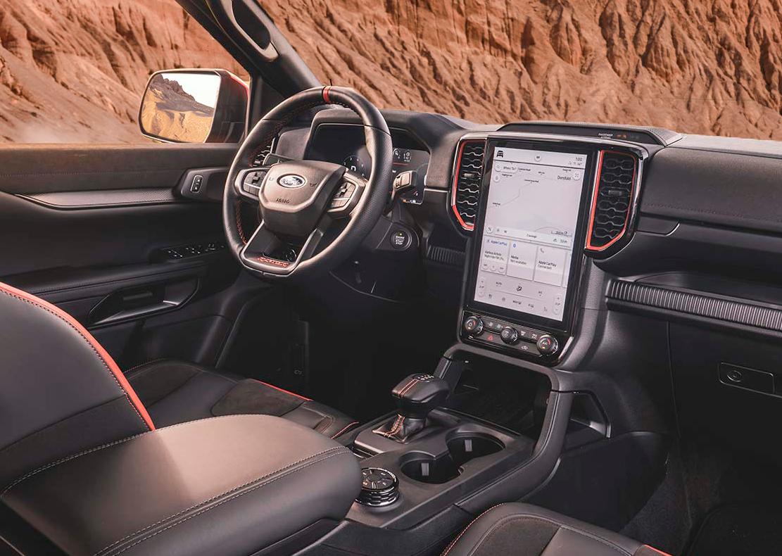 Por otro lado, se destaca por su motor naftero EcoBoost 3.0L V6 de 397CV y 583Nm de torque, el más potente del segmento de pick-ups medianas, que cuenta con una serie de avances tecnológicos para maximizar su rendimiento y performance: Bi Turbo compresor; sistema dual de inyección de combustible; 24 válvulas con doble árbol de levas en cabeza; sistema Ti-VCT de distribución variable inde-