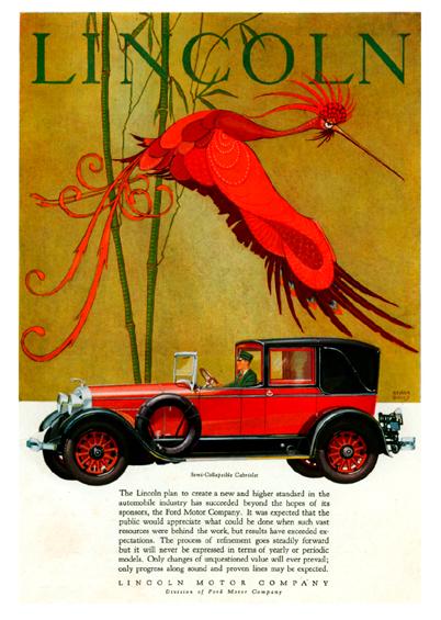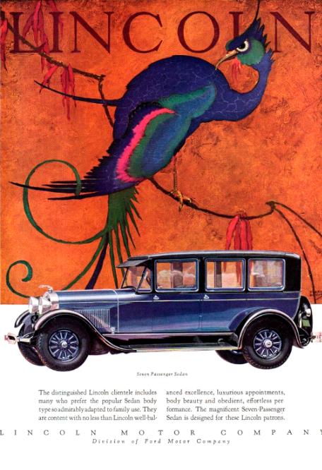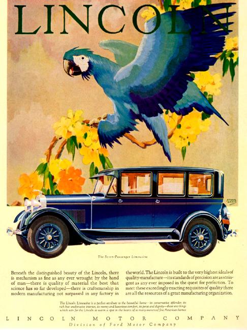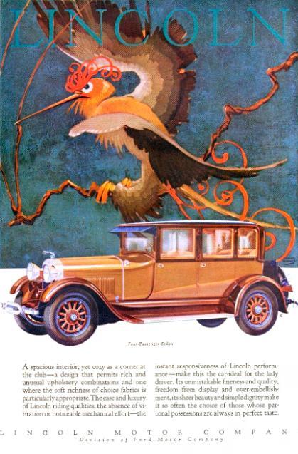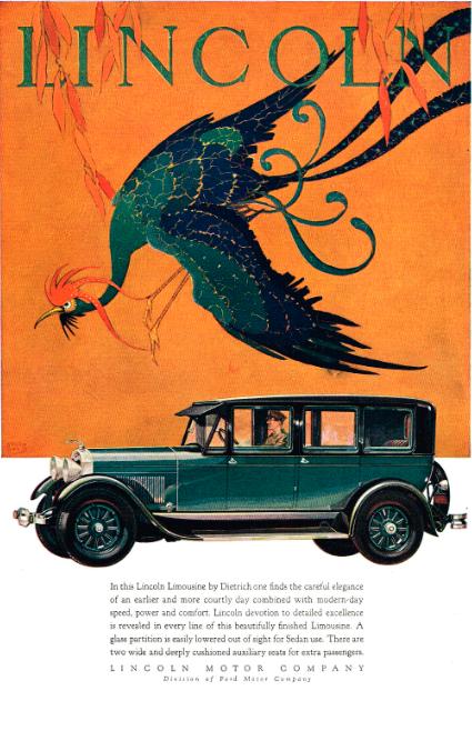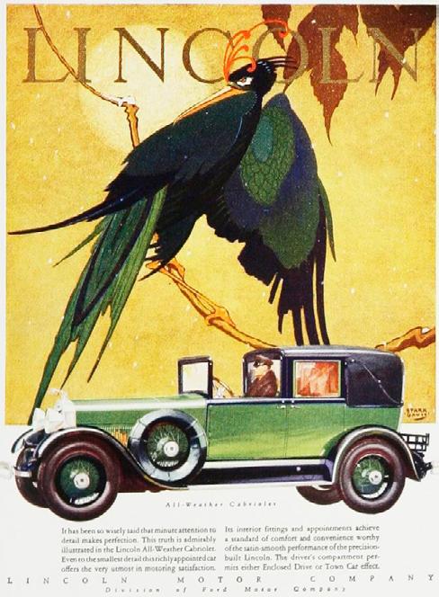 De la Colección de Publicidades Gráficas de El Óvalo Azul les presentamos la campaña de Lincoln del año 1928 ilustrada por Stark Davis, un talentoso pintor impresionista estadounidense.