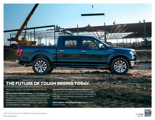 Anticipado en gran medida por el vehículo conceptual Ford Atlas en el Auto Show de Detroit de 2013, el nuevo diseño marcó varios cambios importantes en el diseño de la Serie F. En aras de la economía de combustible, los diseñadores de Ford redujeron el peso en vacío de la F-150 en casi 750 libras, sin alterar físicamente su huella exterior. Para permitir una reducción de peso tan masiva, casi todos los paneles de la carrocería se cambiaron de acero a aluminio (con la excepción del cortafuegos); el marco en sí sigue siendo acero de alta resistencia. Para probar la durabilidad del diseño intensivo en aluminio, durante el desarrollo de la Serie F de 13.ª generación, Ford ingresó prototipos camuflados en la carrera de resistencia Baja 1000 (donde terminaron los vehículos). La F-150 2015 fue la primera camioneta pickup con