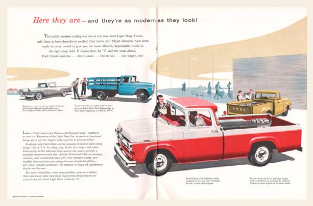 Introducida en 1957, la Serie F sufrió una modernización y un rediseño significativos. Los guardabarros delanteros se integraron en la carrocería y la nueva caja Styleside continuó con las líneas suaves en la parte trasera de la camioneta. La Serie F con cabina superior se suspendió y fue reemplazada por la serie C con cabina basculante.