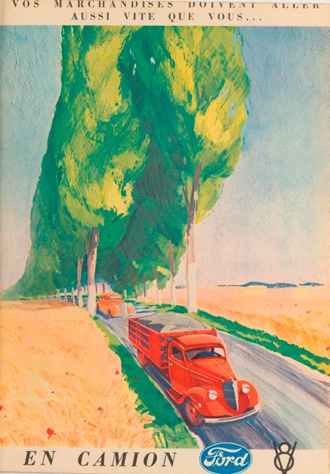 Con un diseño gráfico atípico, la revista Revue Ford de marzo de 1932 mostraba la utilidad de los camiones rápidos Ford AA para los negocios franceses de la época.