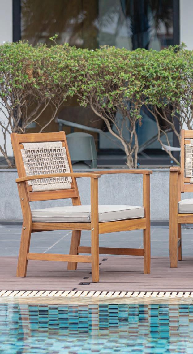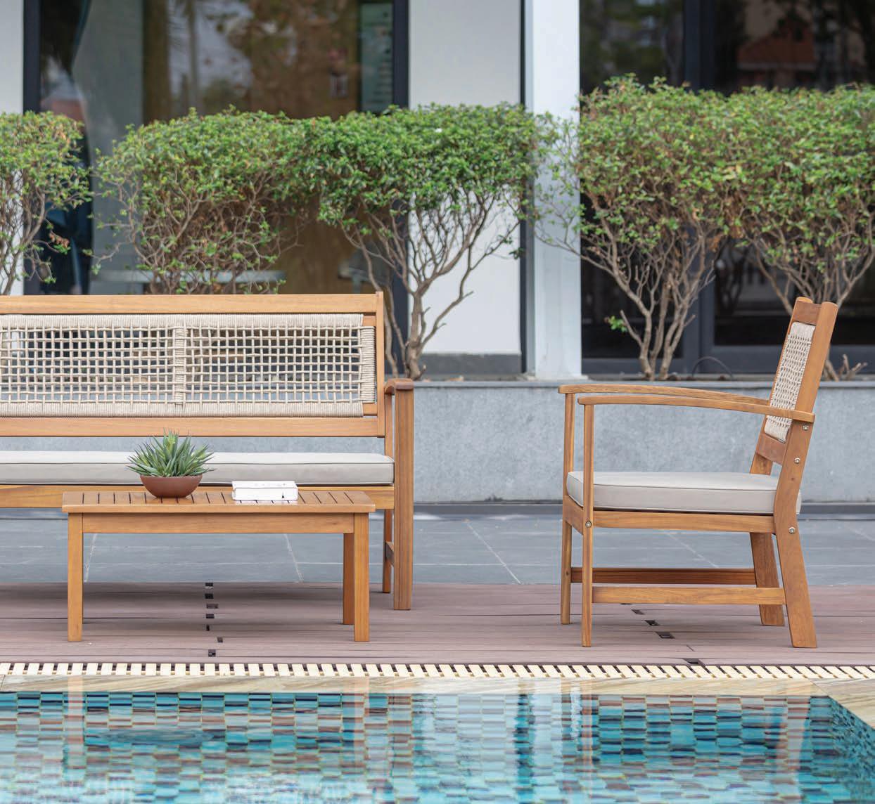 Our Outdoor Living 2025 Collection enhances your lifestyle with comfort and elegance. Our products are sourced from responsibly managed resources, featuring sustainable materials like recyclable aluminum and steel, FSC-Certified Acacia Wood, and biodegradable rattan and wicker.
