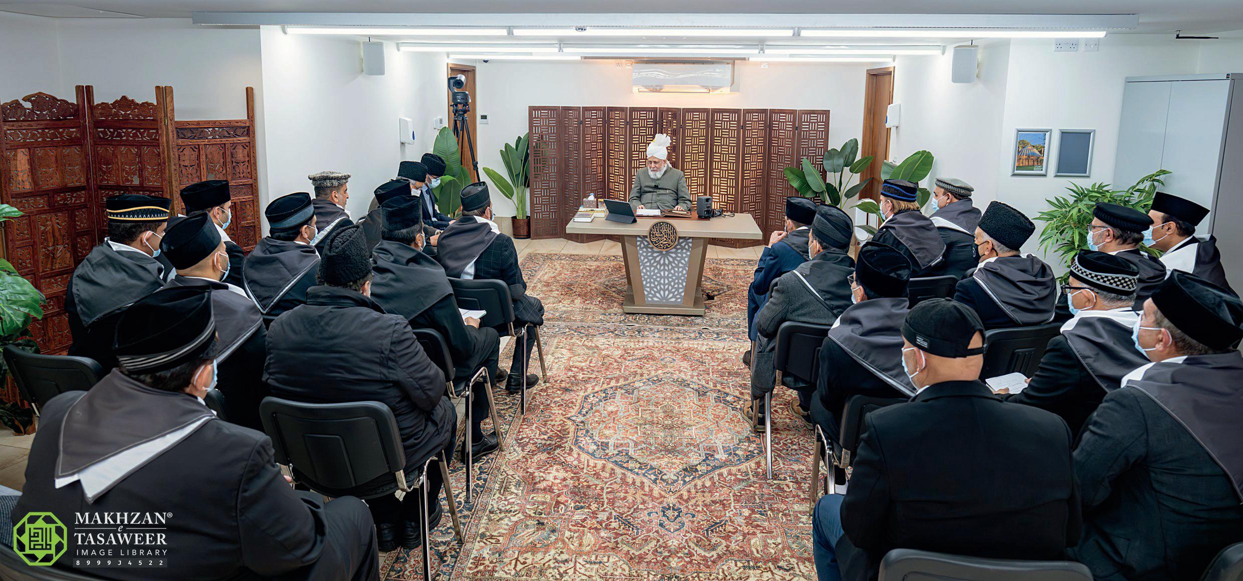 The Naib Sadr Awwal, serving also as Qaid Talim-ul-Quran and Waqf-e-Arzi, reported on his duties. Huzooraa enquired about the participation of the amila members in the waqf-e-arzi scheme. When the qaid admitted that neither he nor the other amila members had participated in the scheme during the previous year, Huzooraa stated that the amila must lead by example; if they do not perform the duty themselves, they cannot expect others to follow. Huzooraa instructed that all amila members should first complete their waqf-e-arzi and also ensure they teach the Holy Quran within their own homes to set the system in motion.