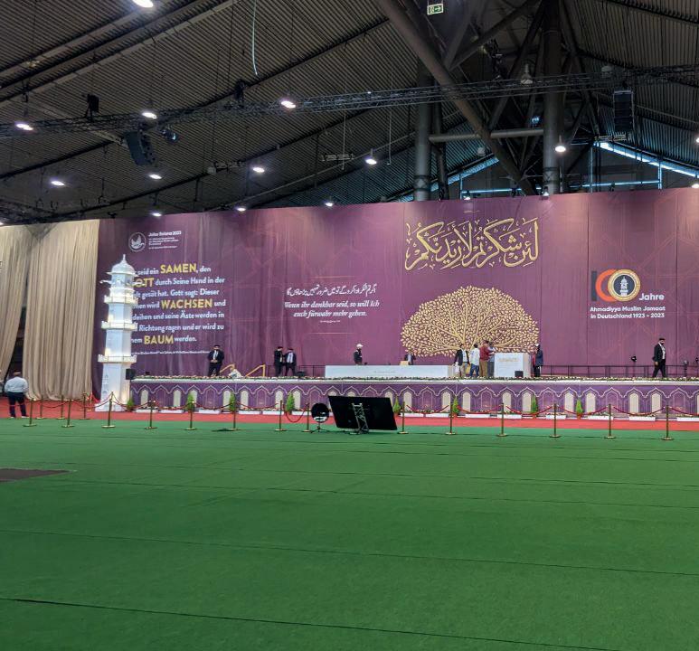 Huzooraa said that it is Allah’s grace that, after a long period, Jamaat-e-Ahmadiyya Germany is getting the opportunity to hold a large-scale Jalsa Salana. Huzooraa said that, insha-Allah, Jamaat-e-Ahmadiyya Germany will in the future be able to acquire its own place. Speaking about the site, Huzooraa said that this year’s Jalsa site is very large and thus requires more effort on behalf of the volunteers, especially in terms of the security arrangements as antiMuslim and anti-Ahmadi sentiments exist.