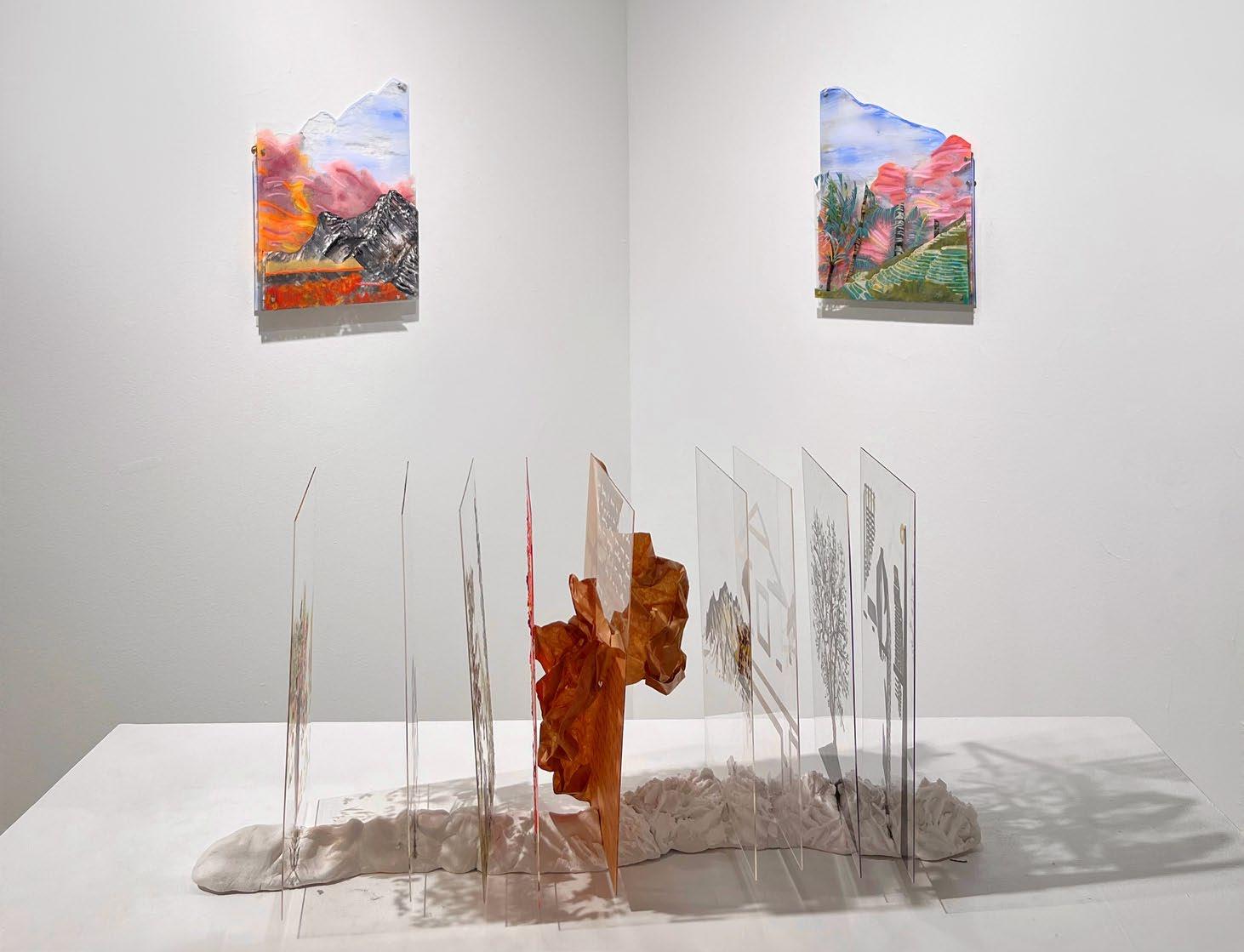 Acrylic on Acrylic Sheet Plexiglass, Spackling Paste, and Clay 21”x 8”x 10” 11” x 14”(x2) SeptemberDecember 2023
