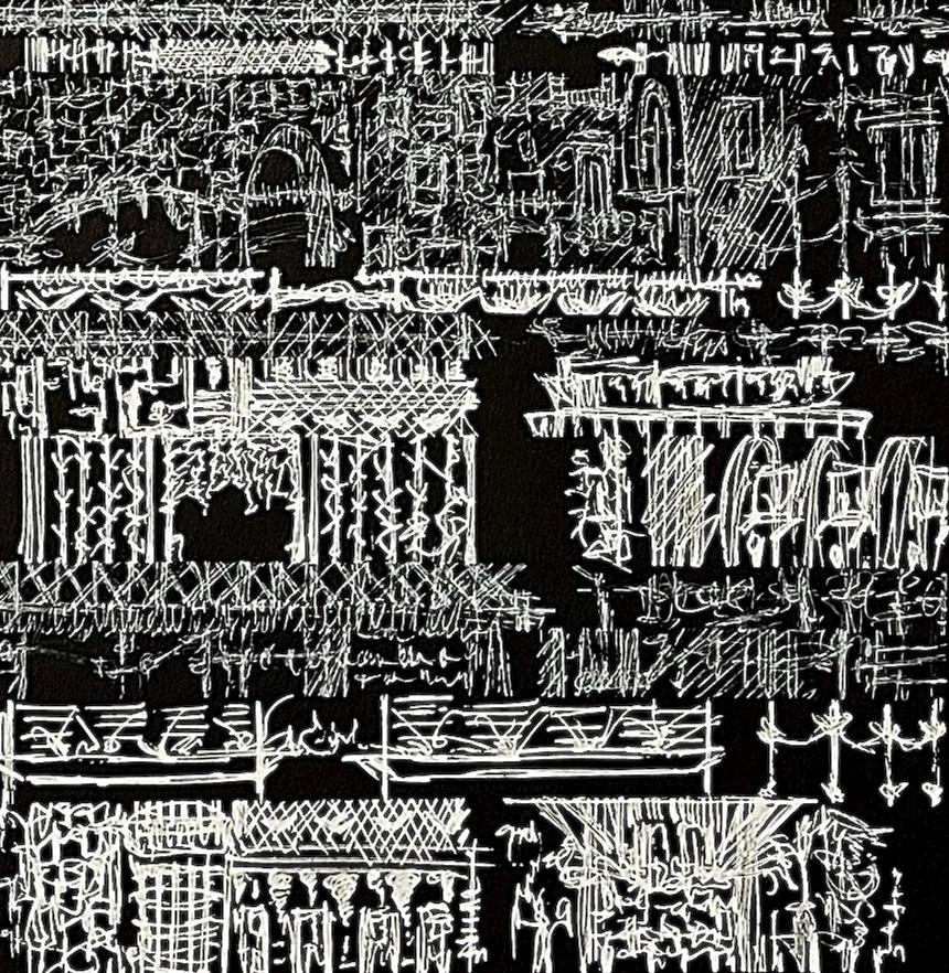 I have always held a fascination for pen drawings and the crafting of unique details, which I've sought to explore through a brief series of experimental pen works I started by asking a few friends to make initial scribbles or draw random shapes, which I then built upon in my drawings I developed a range of textured-style drawings resembling buildings Beyond my creative approach, the artwork aims to present diverse viewpoints, whether viewed upside down or right side up, each offering a distinct perspective, even when inverted