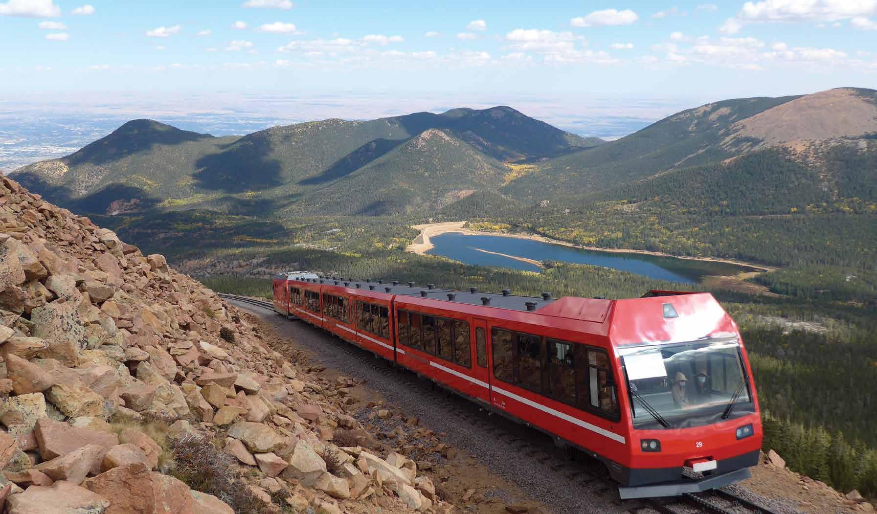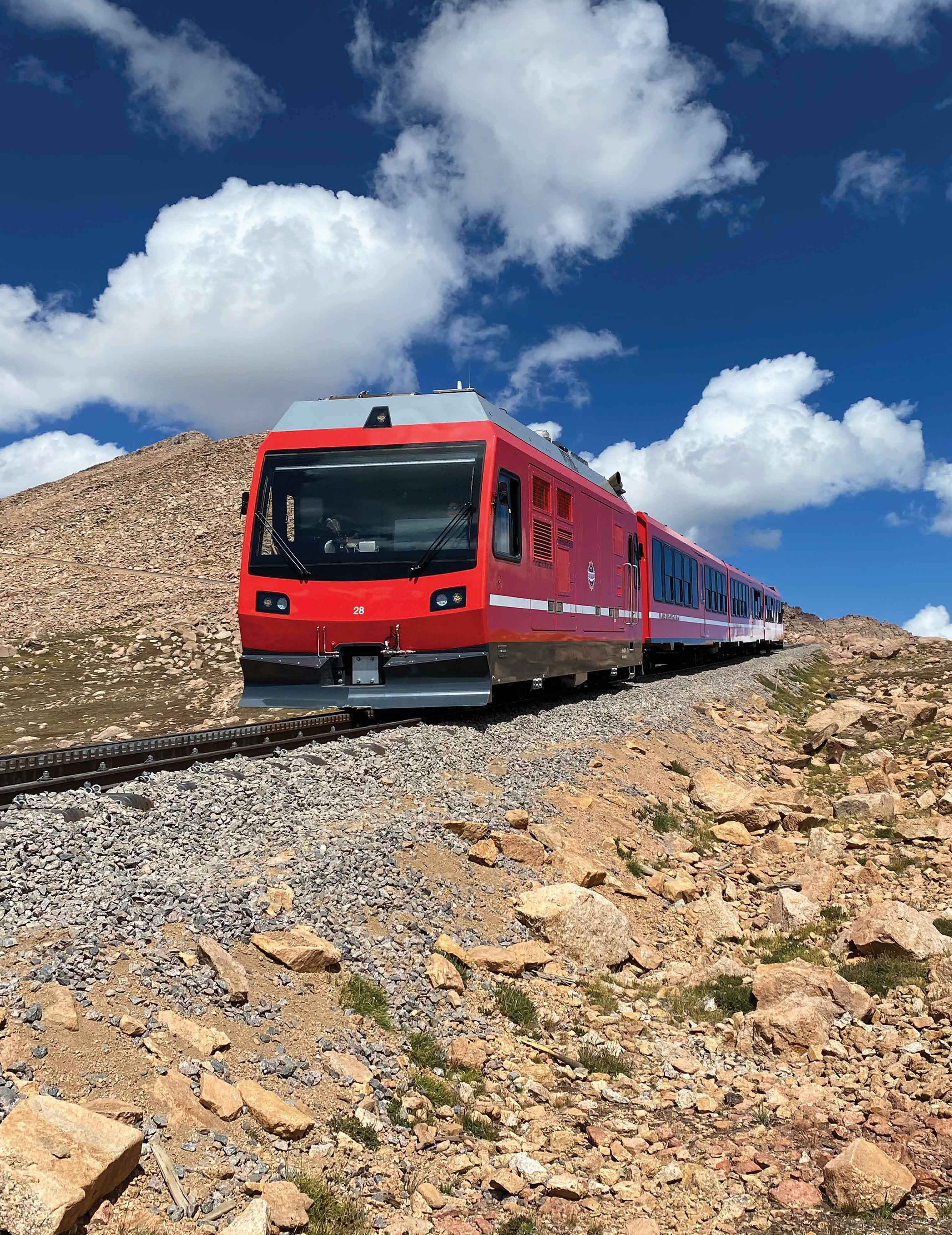 WHETHER IT’S THE CHANGING SEASONS, THE DIVERSITY OF wildlife spotted along the way, or the ever-changing views along the route, a new experience awaits each time guests board The Broadmoor Manitou and Pikes Peak Cog Railway. A recently completed $100 million–plus renovation of the historic railway adds new possibilities, next to a combination of new and refurbished trains, a wholly renovated depot, and the City of Colorado Springs’ new Pikes Peak Summit House Complex (where world-famous donuts and hot cocoa are available for purchase).