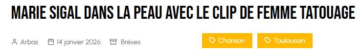 Interview de l’artiste pour l’émission La Scène Toulousaine, Ici Occitanie, avec la diffusion du single Femme Tatouage