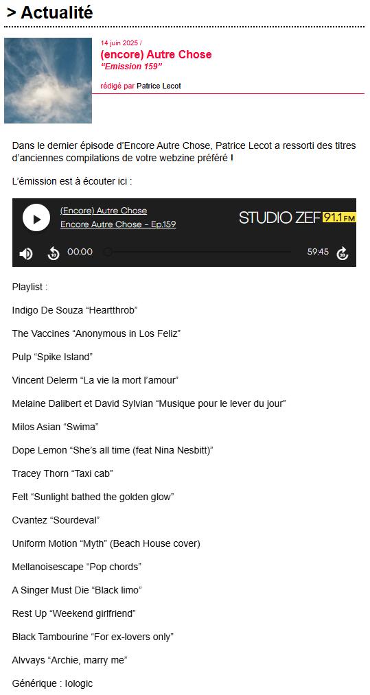 Intégration du single Swima dans l’émission (Encore) Autre Chose #159 du 11/06/2025 de la radio locale Studio ZEF (41)