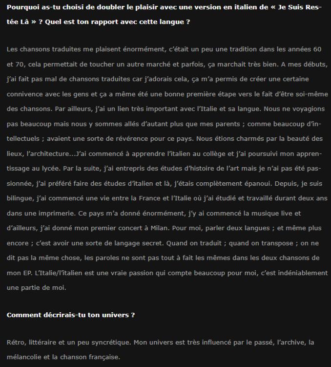 Antenna 1 La Radio (IT) : Diffusion des singles Je ne veux pas changer le monde et L'Étoile a pleuré rose