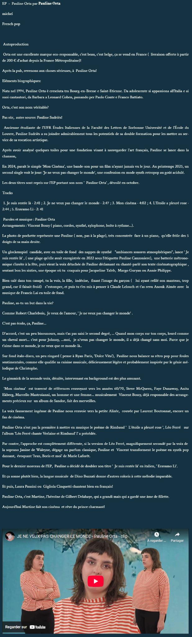 Diffusion du single L’étoile a pleuré rose avec chronique sur l’EP (à partir de 48:45) durant l’émission Décibels d’Emilie