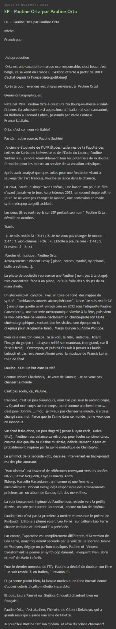 Diffusion des titres de l’EP par l’émission Chansonmania de Seb Dihl le 15/11/2025