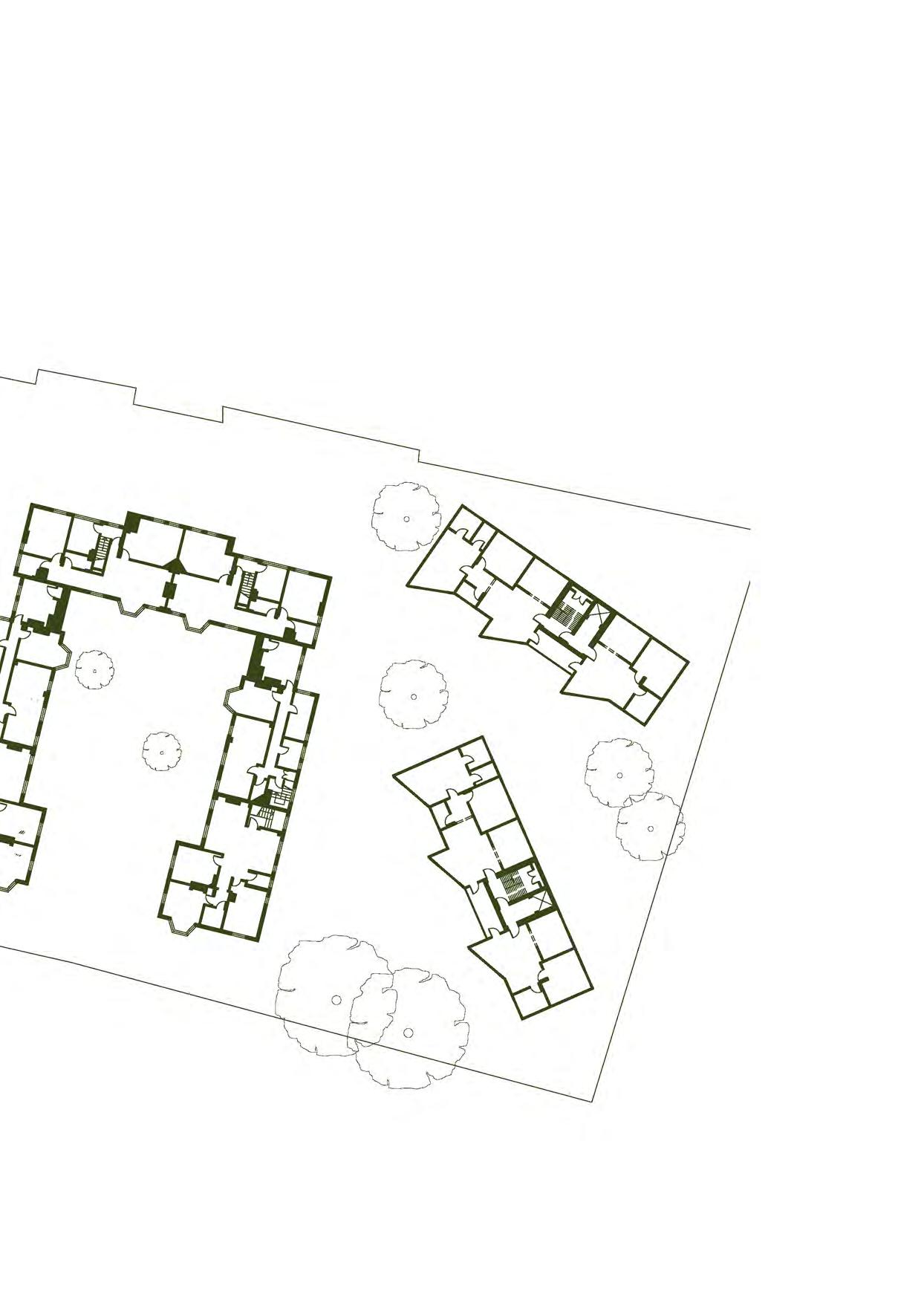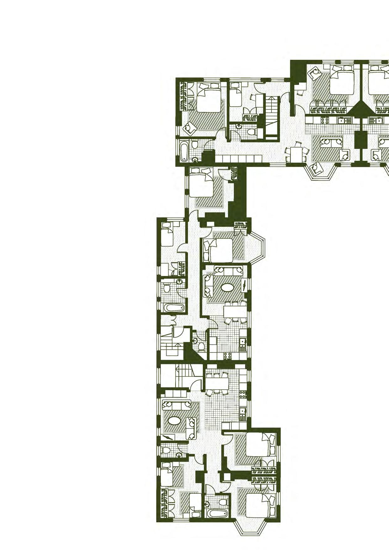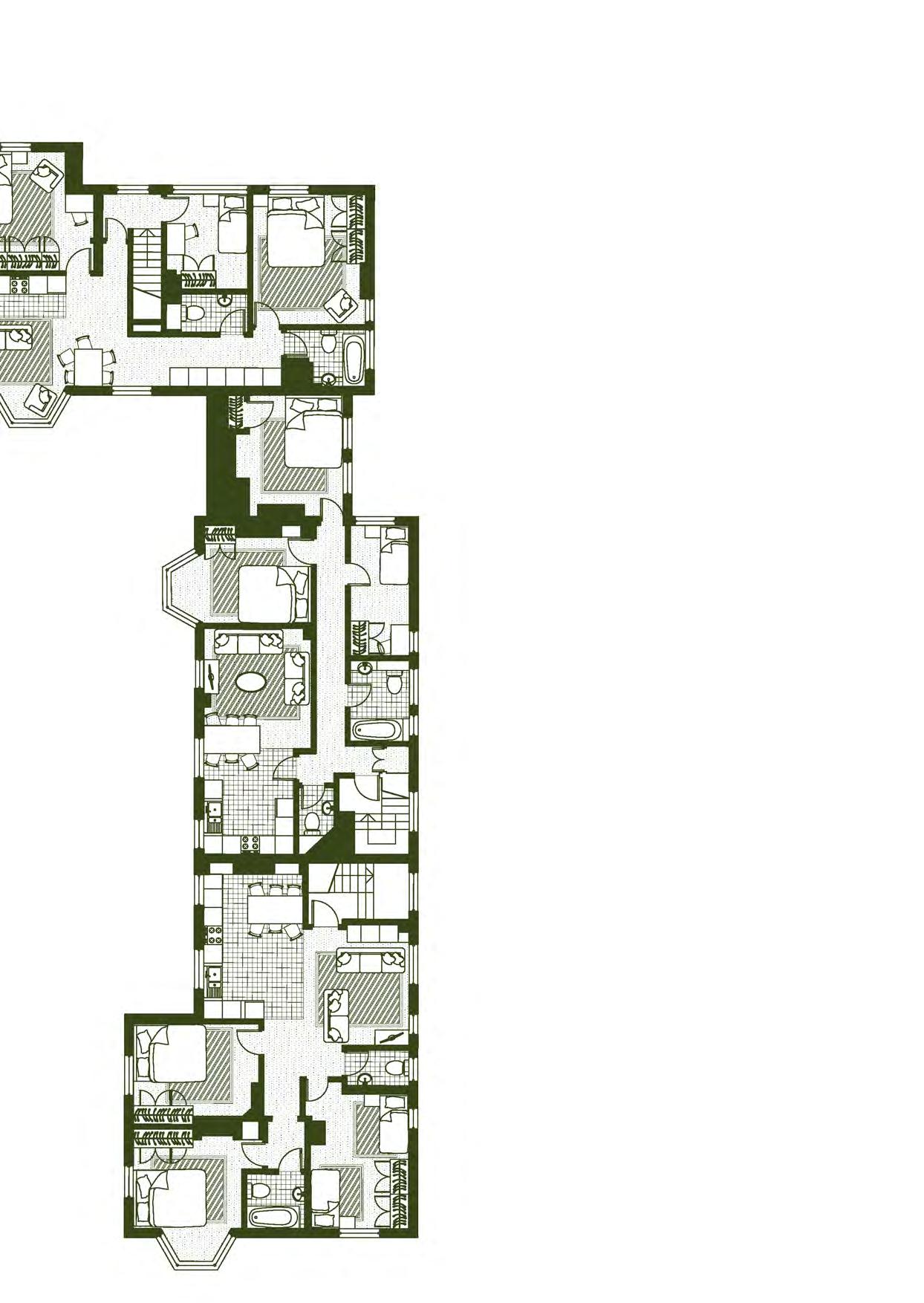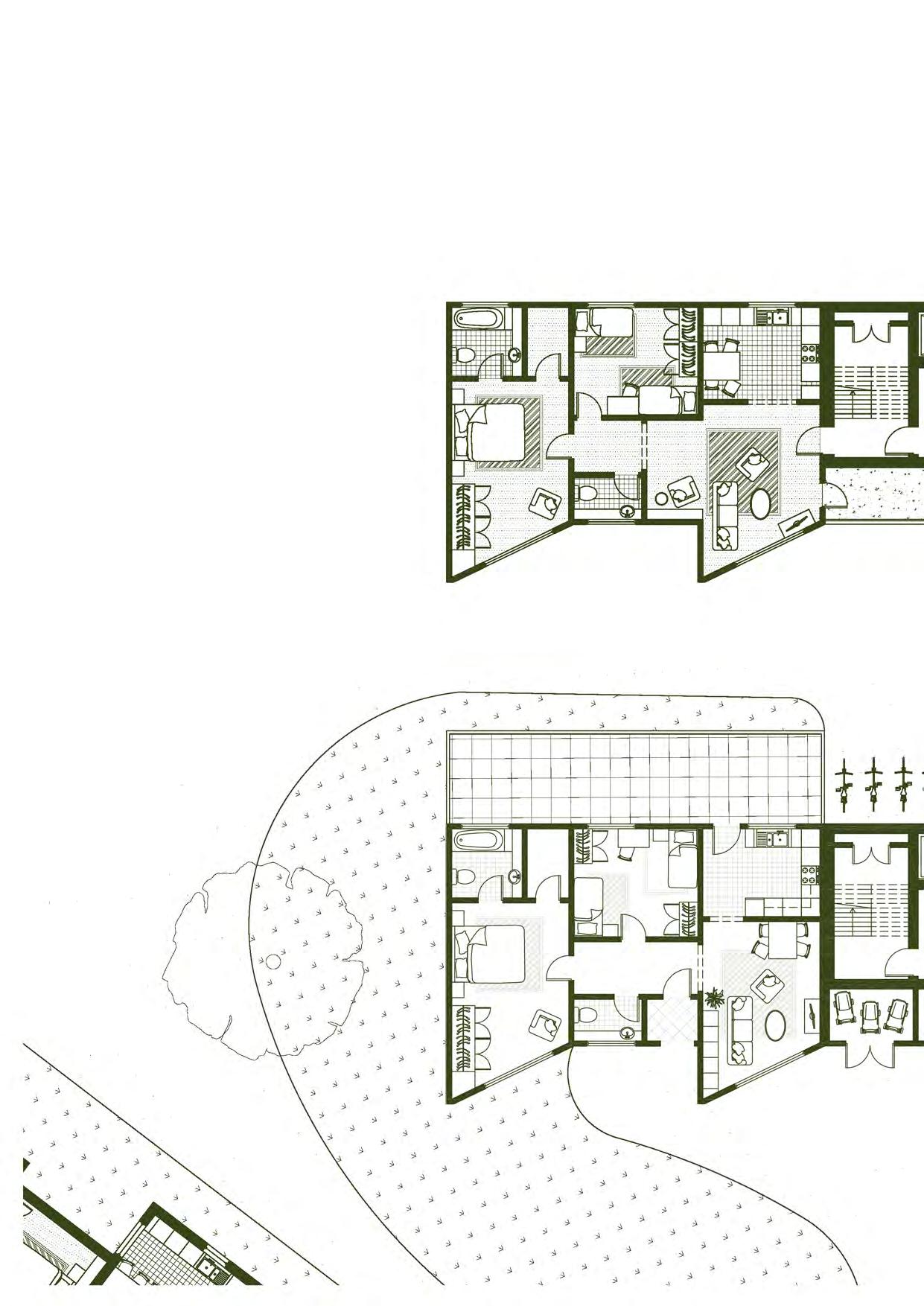 Apartments are designed as closed systems that can be stacked vertically and horizontally next to each other. They do not need to interact.